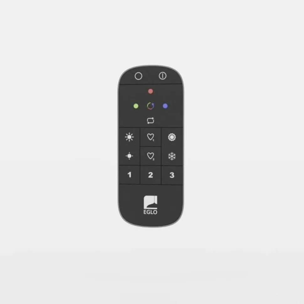 Fjernbetjening EGLO connect-Z Remote 2.0Den sorte fjernbetjening Remote 2.0 passer til produkterne i EGLO ZigBee-serien (connect-Z). Det gør det muligt at styre lamper og lys, selv uden internet. Uanset om du ændrer farvetemperaturen, lysdæmper eller blot tænder og slukker, kan du få de vigtigste kommandoer frem med et enkelt tryk på en knap.