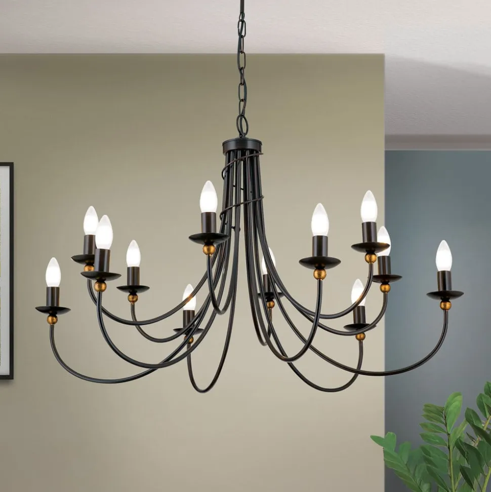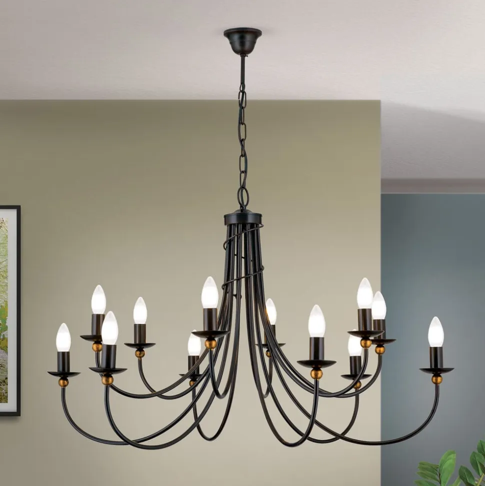 Elegant GARDA lysekrone med eksklusiv antiklak i herregårdsstil med tolv lys