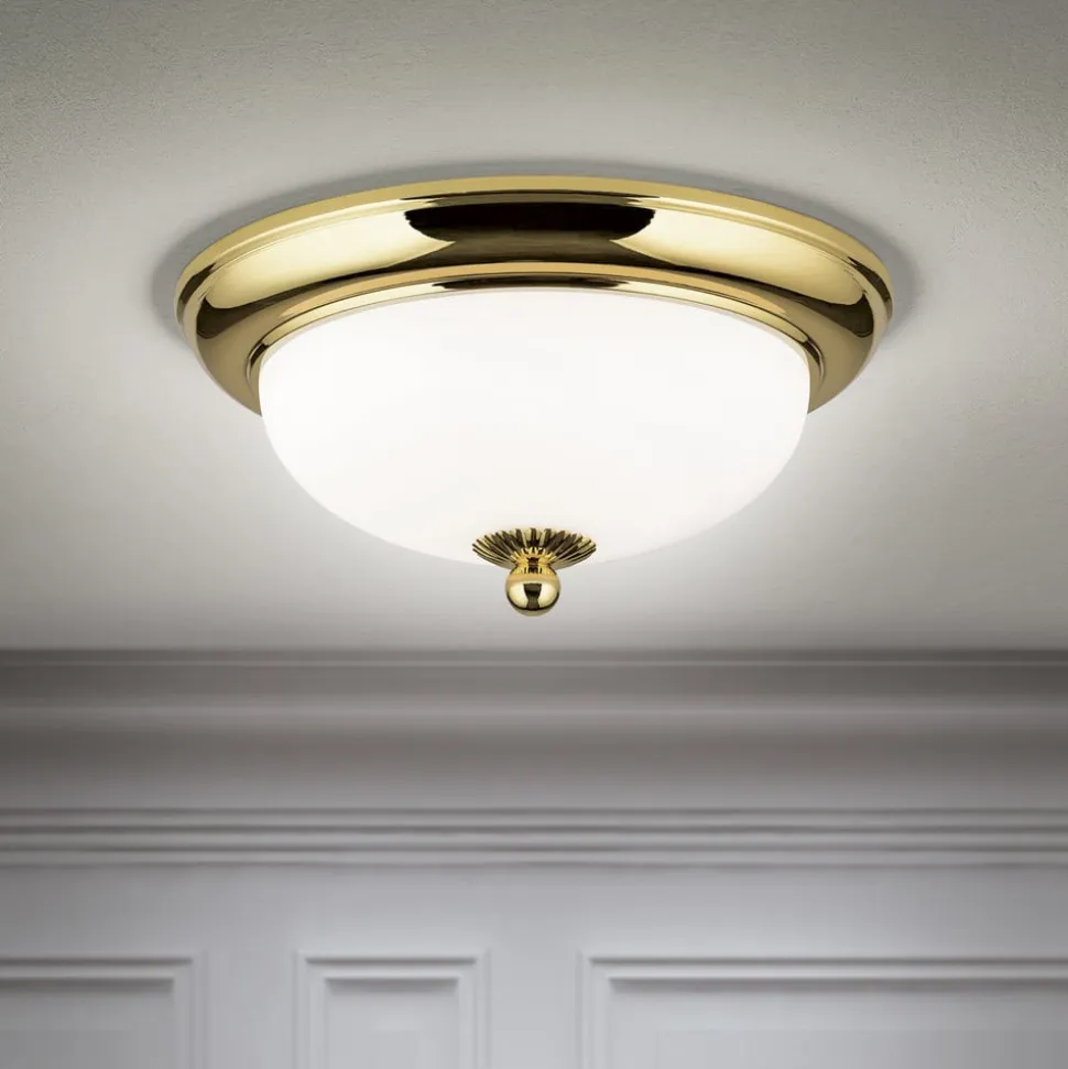 Empire loftlampe, Ø 26,5 cm, guld, matteret opalglas