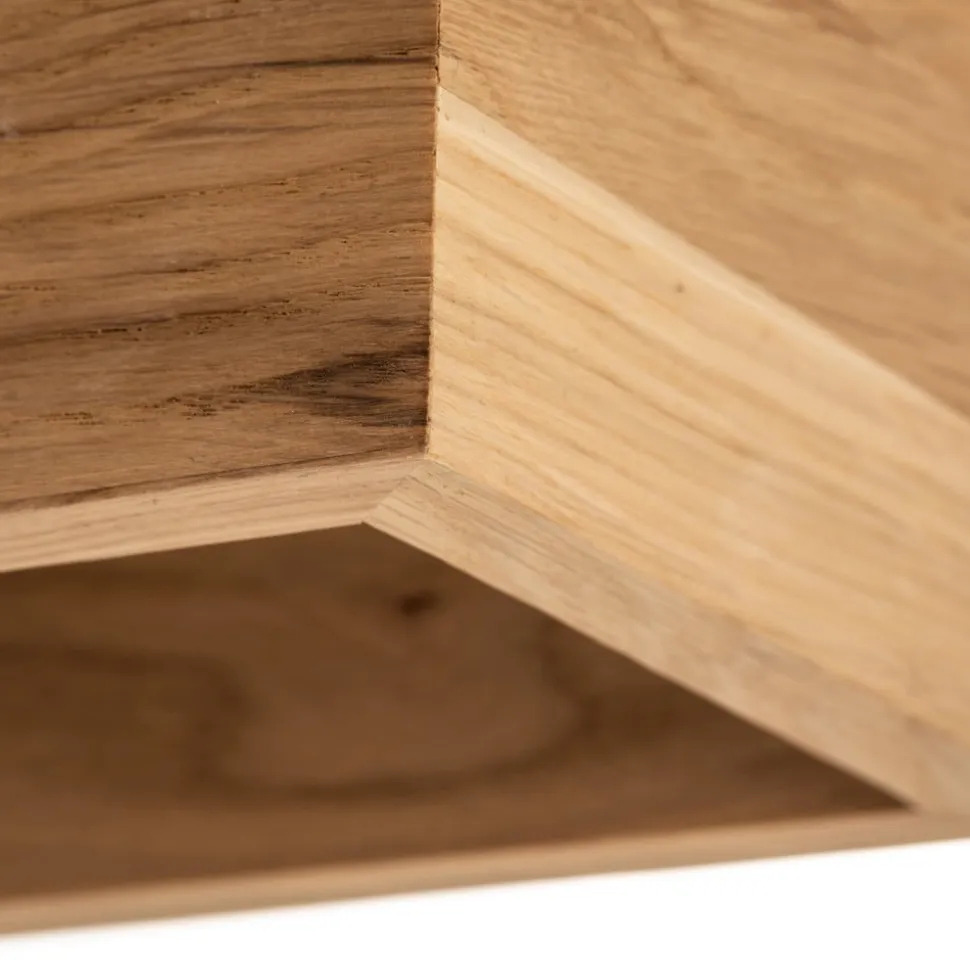 Kubiko-væglampe af olieret eg med indirekte lys Kubiko-væglampen er en enkel kubus af lys, olieret eg. Lyset fra de anvendte lamper reflekteres indvendigt og udsendes indirekte gennem den åbne underside. Det skaber en blød ekstra belysning, som sammen med det naturlige look gør Kubiko-væglampen til et yderst behageligt indretningselement i stuen – Envostar-mærkevare – Fremstillet i Europa – Bæredygtig emballage lavet af genanvendelige materialer