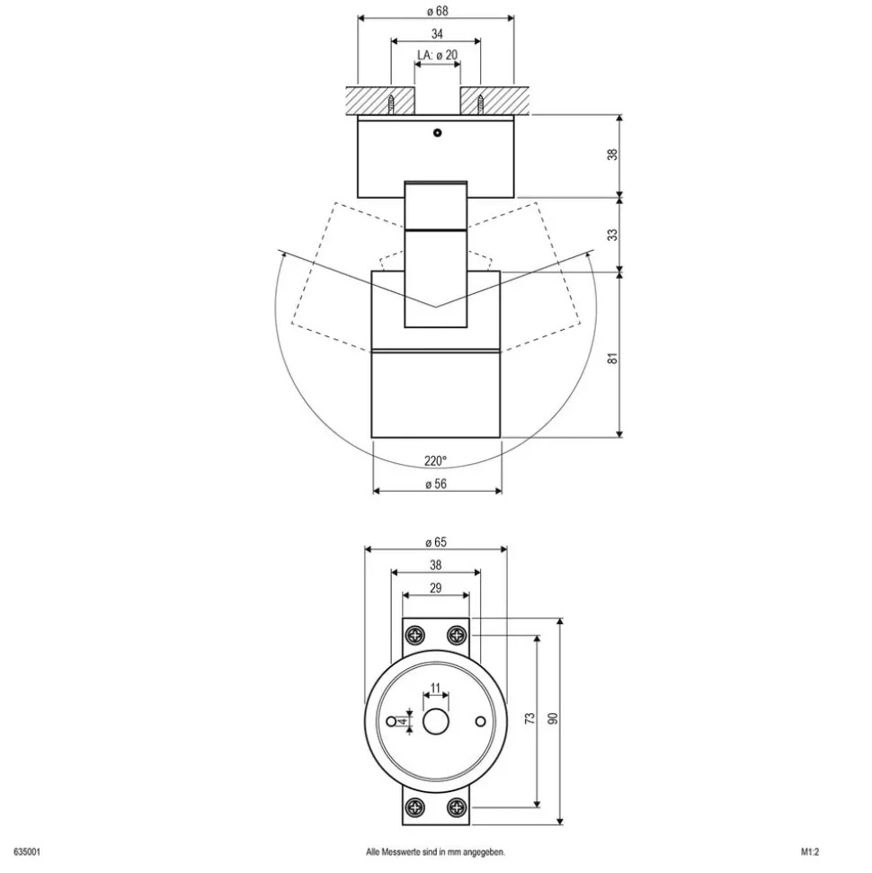 Lavet af aluminium og udstyret med gennemsigtig beskyttende loftspot 635 overbeviser med det retningsbestemte lampehoved. Denne kan drejes 355 ° og drejes 110 ° på begge sider. spot er perfekt til belysning af bestemte områder eller genstande i rummet – hvad enten det er indendørs, i fugtige rum eller udendørs. Det kan også fastgøres til loftet eller væggen.