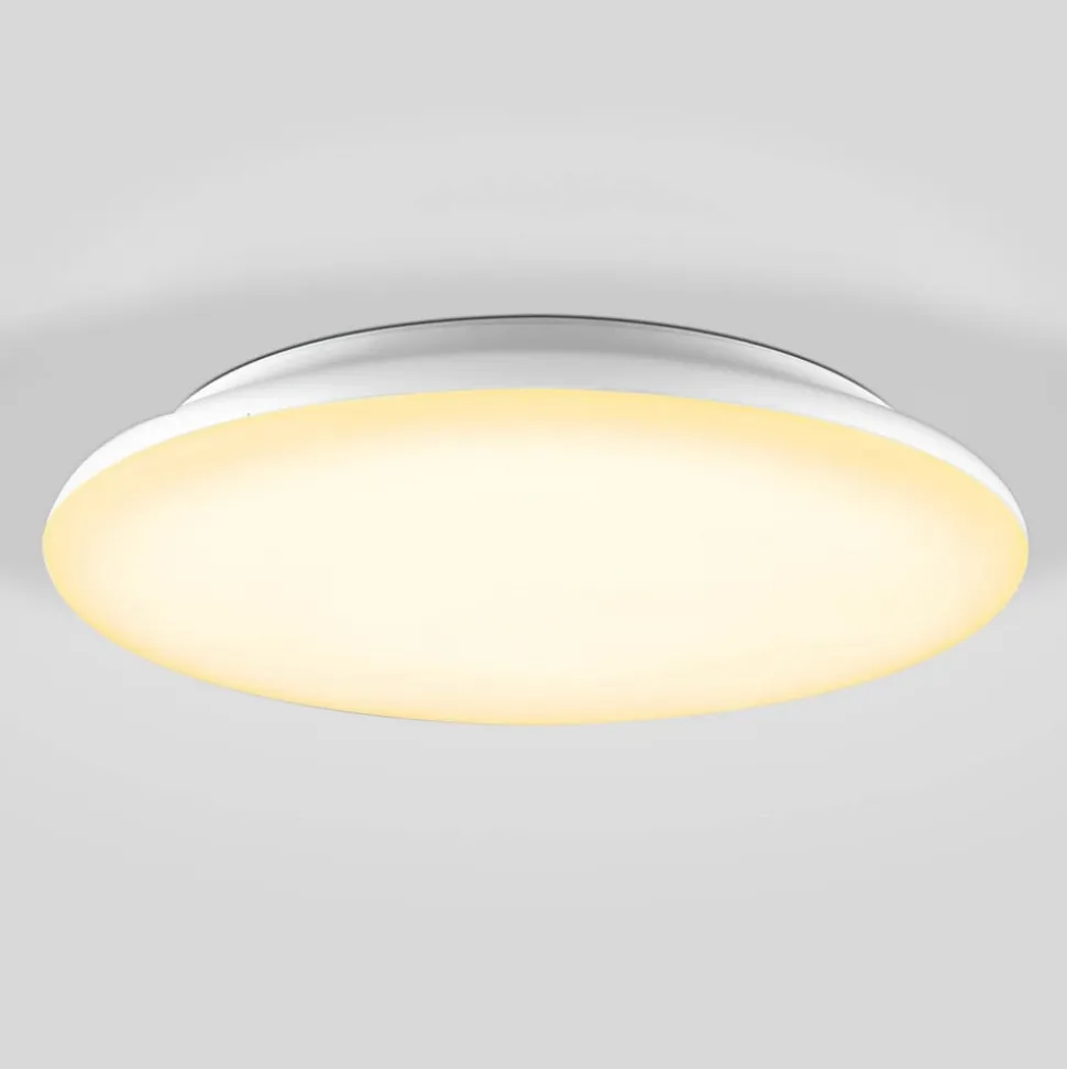 Funktionel Catino LED-loftslampe med CCT-kontakt Både huset og skærmen på Catino LED-loftslampen er lavet af UV-bestandig plast af høj kvalitet og er hvide i farven. Skærmens særlige form sikrer en meget bred udstrålingsvinkel. I kombination med det kraftige LED-modul giver det en meget god og homogen belysning. Når det gælder lysfarve, er der frit valg på alle hylder: Før installationen kan Catino-loftslampen indstilles til varmt hvidt lys (3.000 Kelvin), universelt hvidt lys (4.000 Kelvin) eller dagslys (5.700 Kelvin) ved hjælp af CCT-kontakten. Uanset om det er på badeværelset eller i beskyttede udendørs områder: Catino LED-loftslampen oplyser pålideligt store mørke områder – beskyttet mod støv og stænkvand (IP54) – slagfasthed IK06 – ekstremt bred fordeling (ca. 120 °)