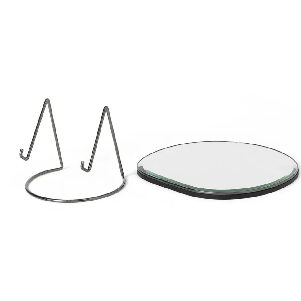 - Spejlglas på MDF-stativ med zinkramme. Spejlet kan tages af stativet.