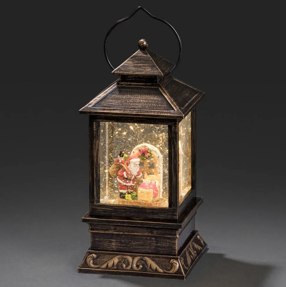 Denne smukke lanterne er fyldt med vand: Indvendig er der – ligesom i de populære snekugler – et vinter-jule-sceneri, hvor man kan se julemanden med sin sæk og to børn, han vil give gaver. Denne dekorationslanterne Julemand og Børn skaber med sit gammeldags design en nostalgisk stemning overalt, hvor den stilles hen. Man behøver ingen strømtilslutning, da lanternen fungerer med tre AA-batterier. Batterierne er ikke omfattet af leveringen, men kan bestilles under tilbehør.
