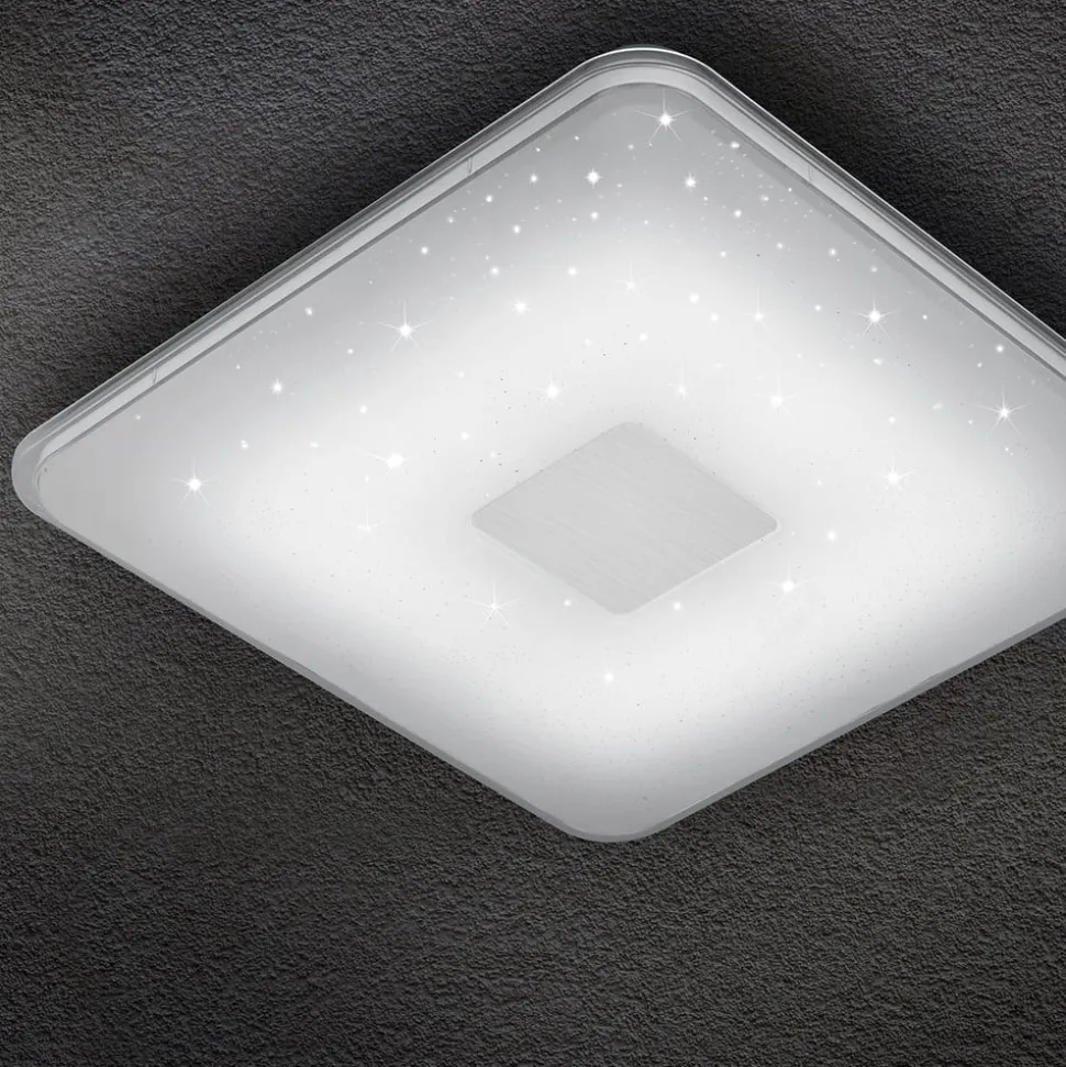 LED loftslampen Samurai holder enkelte funktioner klar, som gør livet dejligere i brugerens hjem. Den medfølgende fjernbetjening gør det muligt at styre alle funktioner efter behov. Således kan man regulere lysstyrken med den eller også vælge lysfarve blandt varmhvid, universalhvid og dagslys. Det giver en lang række forskellige atmosfærer og gør lampen alsidigt anvendelig. Desuden har den en natlampefunktion. Om natten funkler den fiktive stjernehimmel i loftet og indbyder til at drømme. Loftslampens udseende er præget af en kvadratisk form med afrundede hjørner og fuldendes af et lille kvadrat i midten af lampens plastskærm. Samurais funktioner er lige så omfattende som anvendelsesmulighederne.