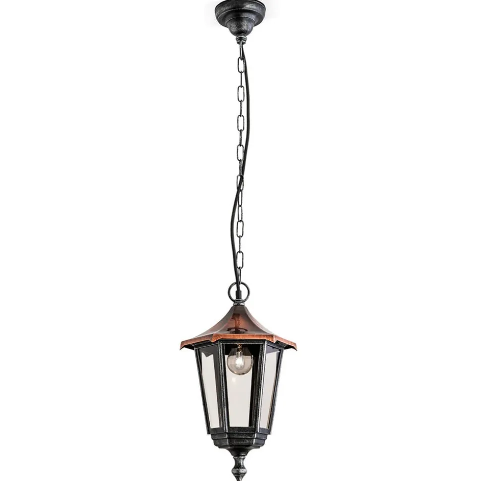 Denne udendørs hængelampen indfanger stemningen fra tidligere århundreder når den monteres i udeområdet omkring et hus. Selv de anvendte materialer – aluminium i sort og grå lak og rustbrun kobberblik – spreder nostalgisk charme. Til syvende og sidst er det dog nok lygteformen der giver den udendørs hængelampe dens antikke udtryk.