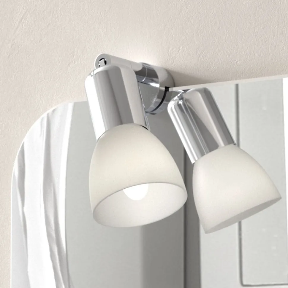 Flytbar spejllampe JENNY med drejeligt spotlight Den elegante spejllampe JENNY monteres ganske enkelt på spejlet (klemmeområde op til 5 mm) og bader badeværelset i et varmt, blændfrit lys. Basen i forkromet metal kan drejes og justeres efter behov. Spotlightet er omgivet af en skærm af satineret glas, som giver en særlig blød belysning. Armaturerne fra denne producent er omhyggeligt håndlavede. Det garanterer holdbare produkter af høj kvalitet, som lever op til de højeste kvalitets- og sikkerhedsstandarder.