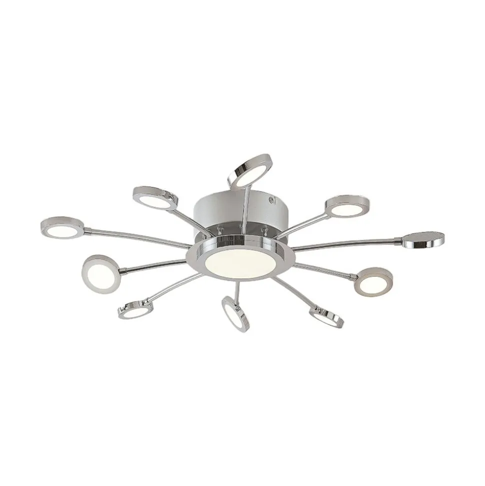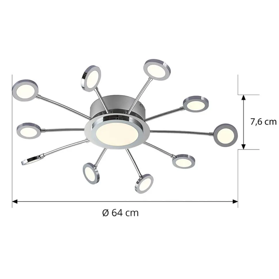 Så smuk som solstråler: Meru loftlampe med fjernbetjening til ændring af lysstyrke og lysfarve Merus form minder faktisk om en sol med skinnende stråler, da mange arme strækker sig fra loftlampens lysende centrum og slutter med en lille, rund lysflade. Armaturet ser særligt stilfuldt ud i moderne interiører og giver frem for alt tilstrækkelig lysstyrke. Den medfølgende fjernbetjening kan bruges til at ændre lysfarve og lysstyrke, så denne loftlampe kan bruges til at opfylde forskellige krav. Batterier (2 x AAA) medfølger ikke.