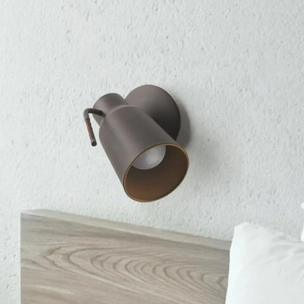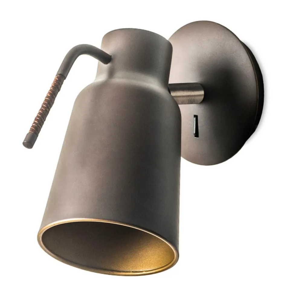 Udenpå mørkebrun og indeni guldfarvet – væglampen Funk