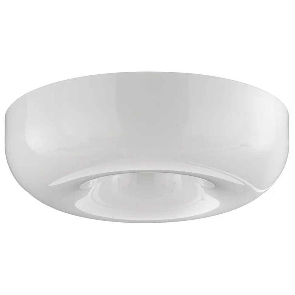 Foscarini Circus – rund loftslampe lavet af mundblæst glas Den tidløse form på Circus-loftslampen gør den til en universelt anvendelig belysningsløsning. Armaturet, hvis cirkulære form er lavet af mundblæst glas, har en behagelig blød og blid effekt. I midten af lampen er der et dekorativt element af forniklet metal, som er blevet kendetegnende for det specielle design. Det matte glas lader lyset glide blidt, blændfrit og jævnt ind i rummet og skaber en behagelig belysning. Det meget feminine design kommer fra den tyrkiskfødte industrielle designer Defne Koz, som ikke kun designer armaturer for den venetianske producent Foscarini, men også møbler og boligtilbehør for kendte virksomheder over hele verden. Loftslampen Circus kombinerer dygtigt blæst glas med metal og imponerer med sin enkle, harmoniske form.