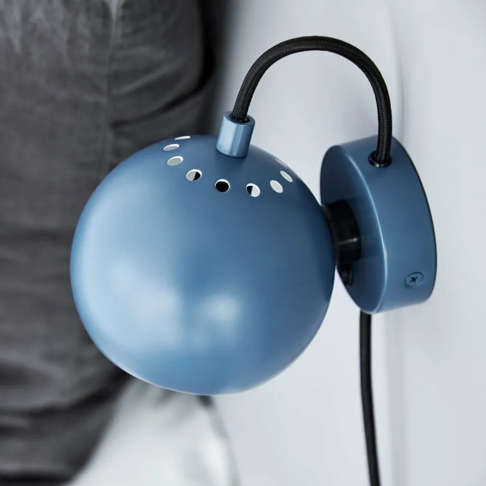 Ball Magnet væglampe – et klassisk armatur af Benny Frandsen Benny Frandsen, en dansk elektroingeniør, drømte om at designe og producere armaturer efter at have afsluttet sin uddannelse. Da hans første forsøg med meget geometriske lamper ikke var nogen stor succes, indså han, at danskerne foretrak runde former, og han skabte Ball Magnet-væglampen og Ball-pendlen. Ball Magnet-væglampen viste sig at være en særlig succes og var snart at finde i næsten alle danske hjem. Ball-væglampen bevarer stadig sit klassiske design efter mere end 50 år, nu også i trendy farver og med moderne lysteknologi. I årenes løb er Ball-serien blevet udvidet til at omfatte mange modeller samt gulv- og bordlamper. Den indbyggede magnet mellem beslaget og skærmen gør det muligt at dreje lampen i alle retninger. Den dekorativt afrundede metalskærm udsender ikke kun lys direkte nedad, men også indirekte opad takket være ringen af små udskæringer i toppen. Resultatet er stemningsfuld ekstra belysning – velkommen i alle stuer og soveværelser.