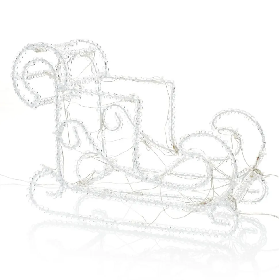 Rensdyrhold med kane – en fantastisk juledekoration til haven Denne søde lysende figur til udendørs brug er lavet af klar plast. Den er oplyst af 84 hvide lysdioder, hvoraf 12 er udstyret med en glitrende effekt. Denne smukke rensdyrduo med slæde vil med garanti ikke blive overset i nogen have. Den udendørs transformer er inkluderet i leveringsomfanget.