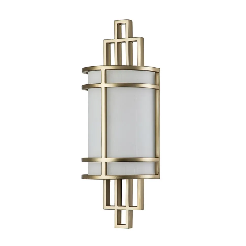 Elegant designet væglampe Fusion 1 Fusion 1 er indbegrebet af en elegant stil: Den detaljerede ramme er lavet af stål og lakeret i messingfarve, den hvide glasskærm sikrer en blændfri udstråling af lyset fra den indsatte lampe. Væglampen Fusion 1 beriger enhver elegant boligstil – dæmpbar udefra