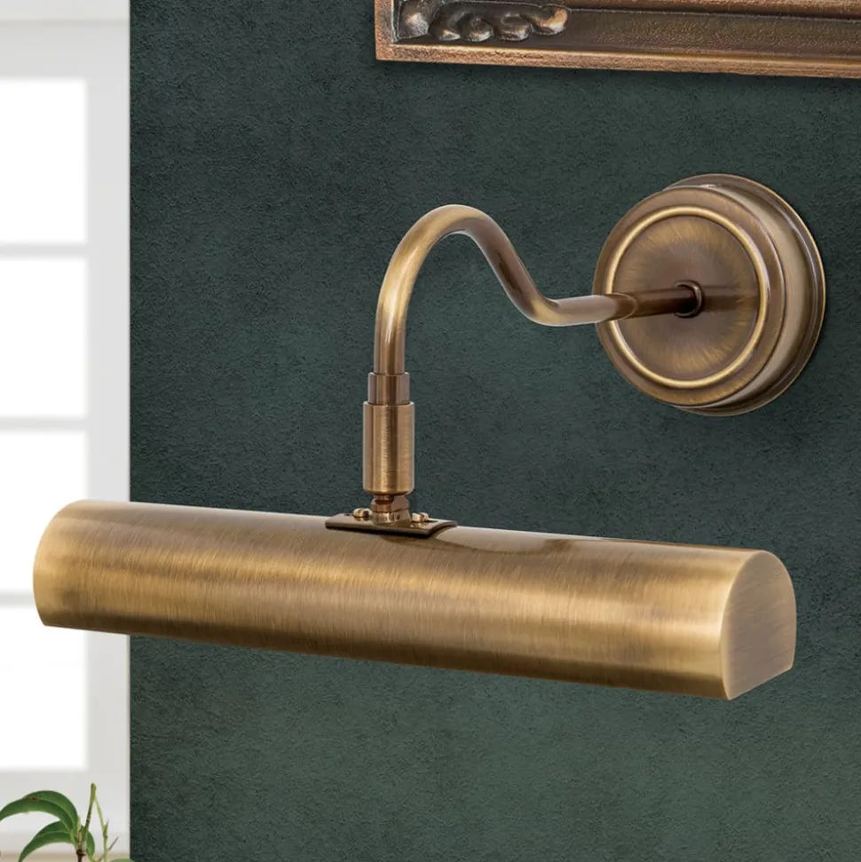 Denne lille billedlampe egner sig fremragende til optimal belysning af små billeder og objekter. Den fleksibelt justerbare reflektor sørger for muligheden for at tilpasse lyset efter situationen i rummet. Billedlampen Larigas design i gammelmessing virker meget elegant og kan kombineres med mange former for indretninger.