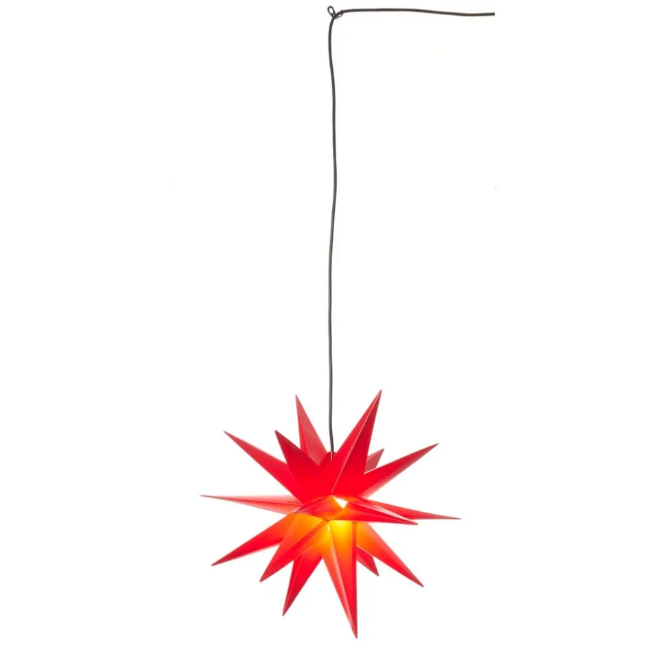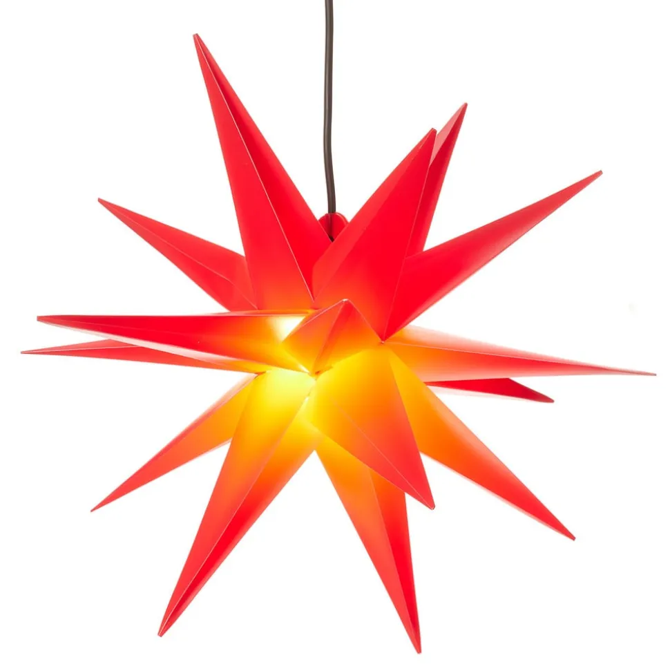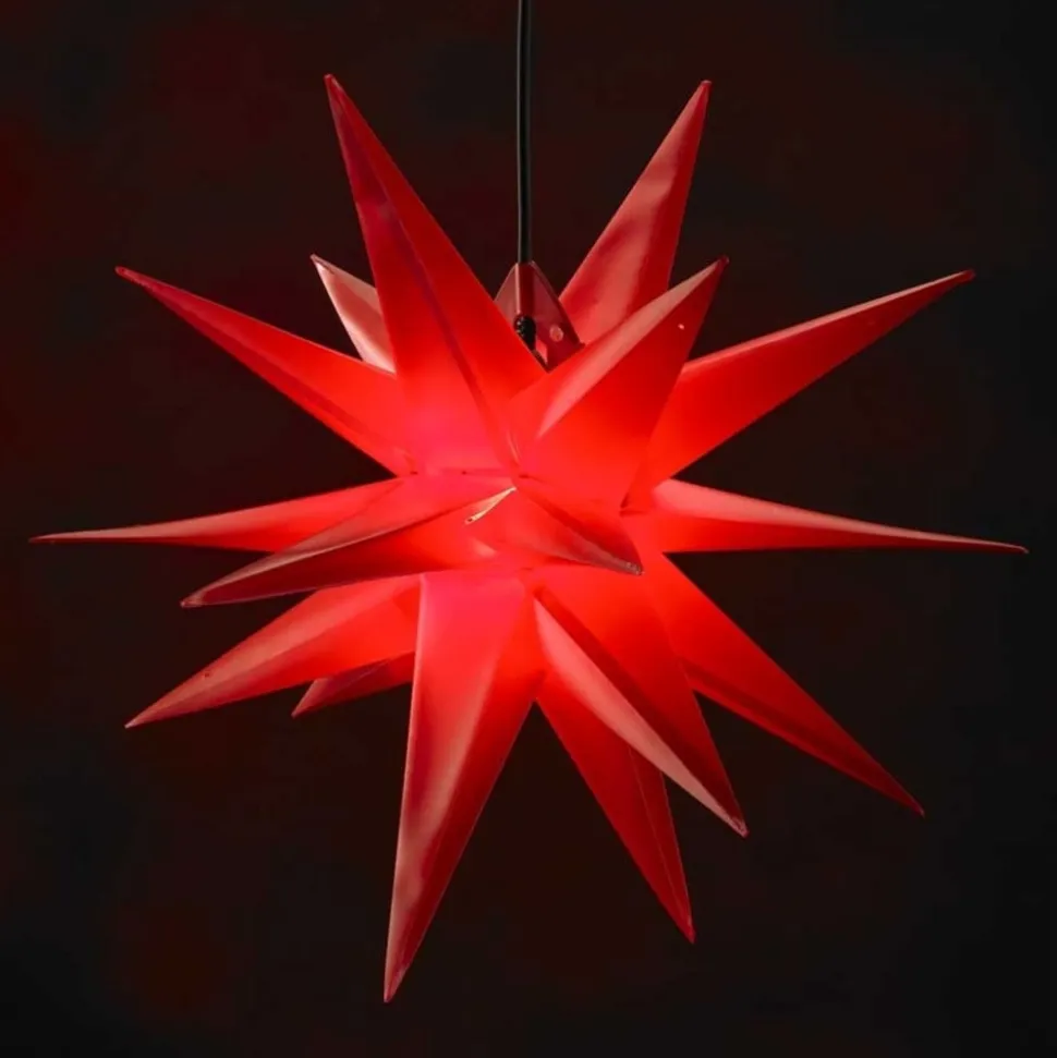 Denne mangepunktsstjerne er fremstillet af vejrbestandigt plast og er med IP44-beskyttelsesgraden også egnet til udendørs brug, da selv kraftigere vejrpåvirkninger som f.eks. vandstænk på alle sider ikke kan skade dens skønhed. Stjernen fascinerer ikke kun på grund af sin størrelse med en diameter på ca. 50 centimeter, men også på grund af sin lysstyrke. Dens enkle skønhed spreder et klart lys, der er synligt på lang afstand i vintermørket og sætter stemningen for julen på en lovende måde