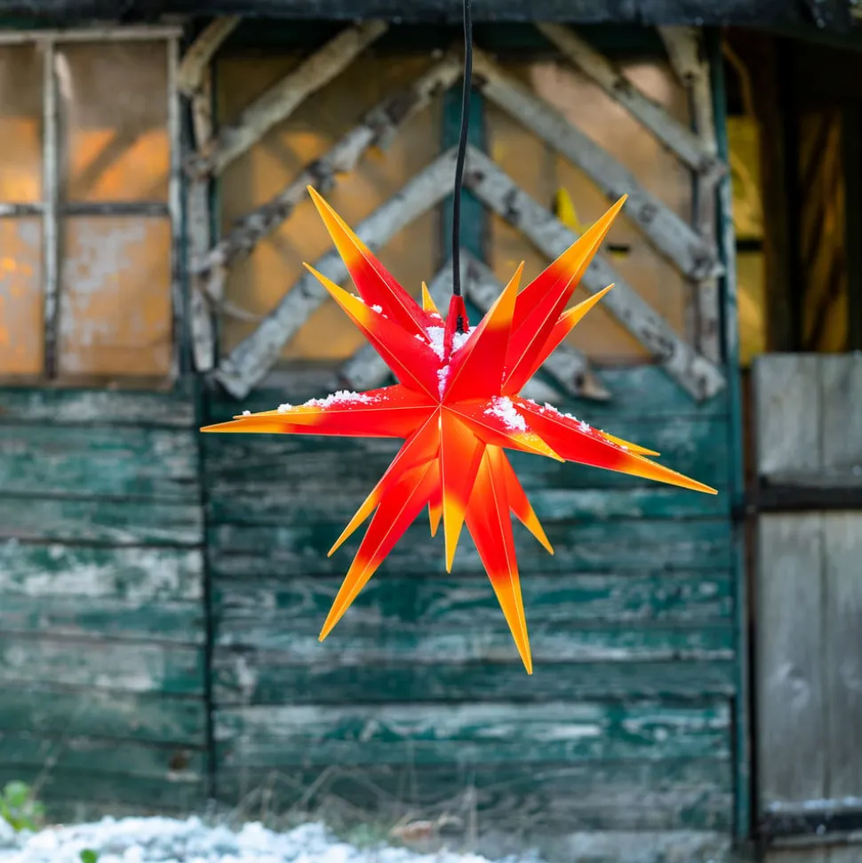 Denne mangepunktsstjerne er fremstillet af vejrbestandigt plast og er med IP44-beskyttelsesgraden også egnet til udendørs brug, da selv kraftigere vejrpåvirkninger som f.eks. vandstænk på alle sider ikke kan skade dens skønhed. Stjernen fascinerer ikke kun på grund af sin størrelse med en diameter på ca. 50 centimeter, men også på grund af sin lysstyrke. Dens enkle skønhed spreder et klart lys, der er synligt på lang afstand i vintermørket og sætter stemningen for julen på en lovende måde