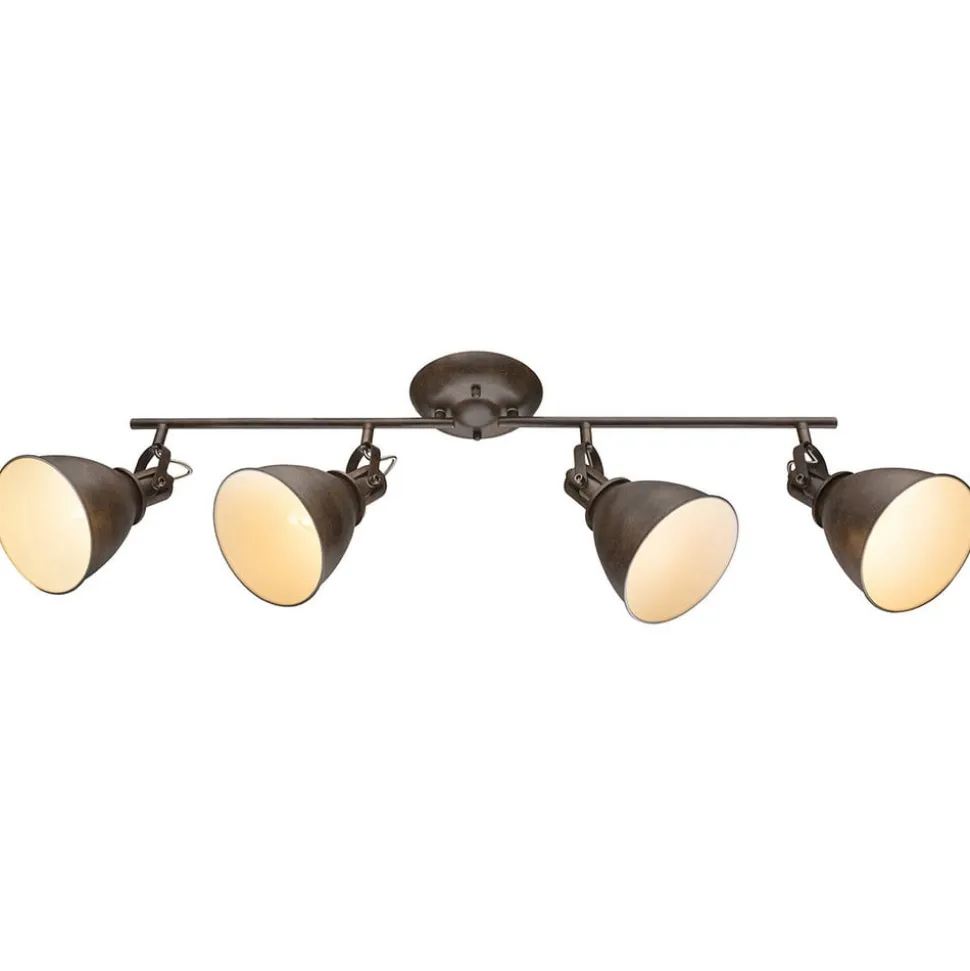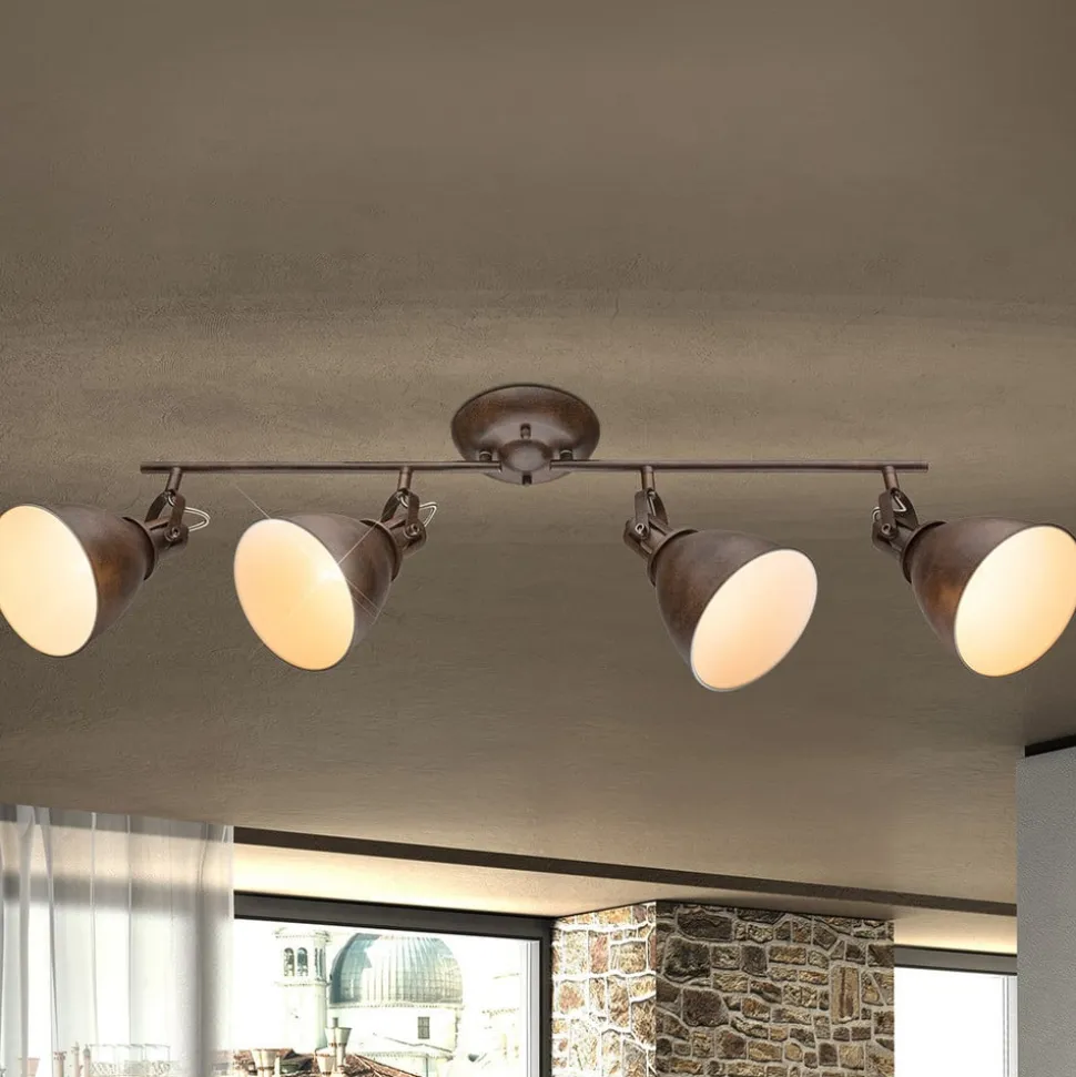 Det enkle loftspot Giorgio med 4 lyskilder i rustbrun, passer primært til indretninger med et vintage og industrielt udseende, samt minimalistiske indretningsløsninger. For at skabe en harmonisk atmosfære, anbefales det at kombinere loftlampen Giorgio med tilsvarende designede lyskilder. Søger man en spændende blanding af stilarter, kan man også anvende lamper med tekstil- og glasskærme.