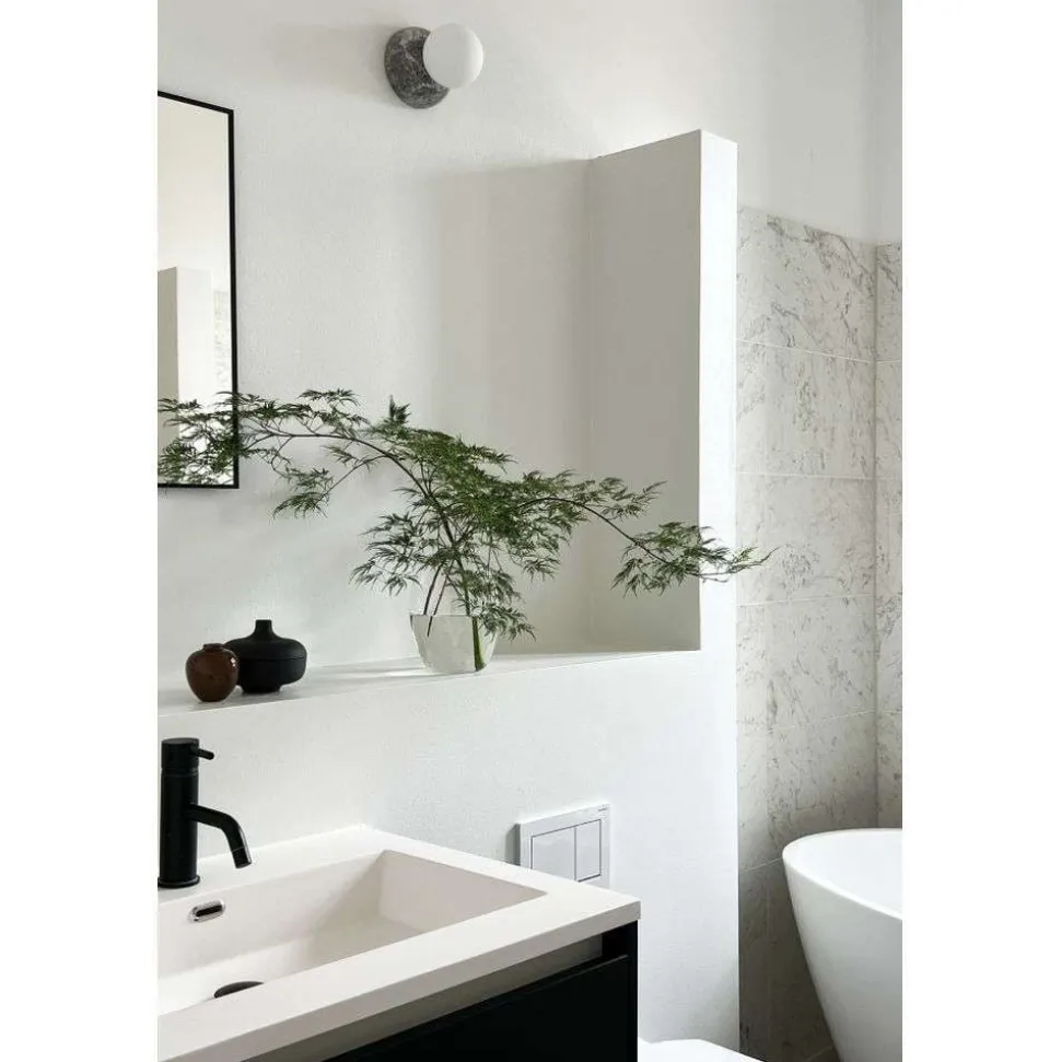 Væglampe Torrano fra Globen Lighting forener tidløst design med materialer af høj kvalitet. Blandingen af ædel marmor og hvidt glas giver lampen et eksklusivt udseende, der harmonerer med forskellige boligområder som stue, spisestue, entre eller badeværelse. Den grå marmorering på soklen sætter diskrete accenter, der skaber en luksuriøs atmosfære.