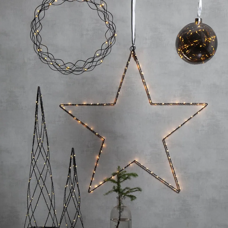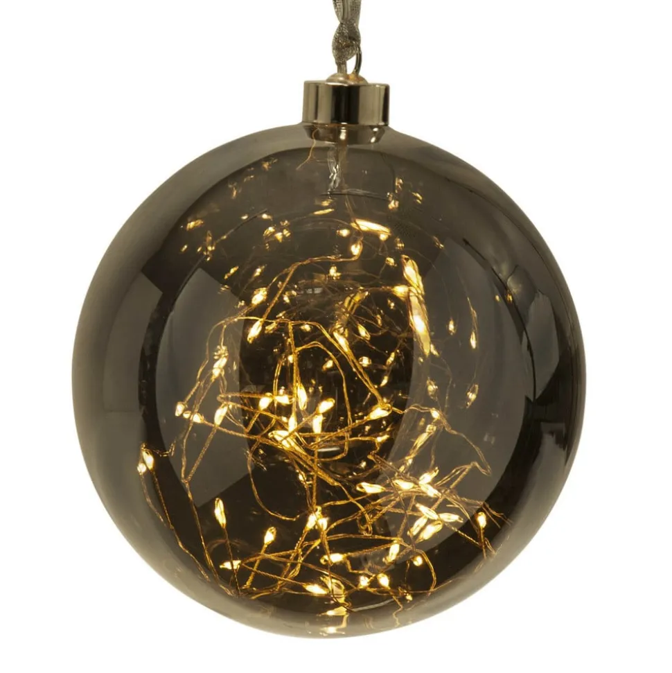 Glow LED-dekokugle af glas, Ø 15 cm, røggrå