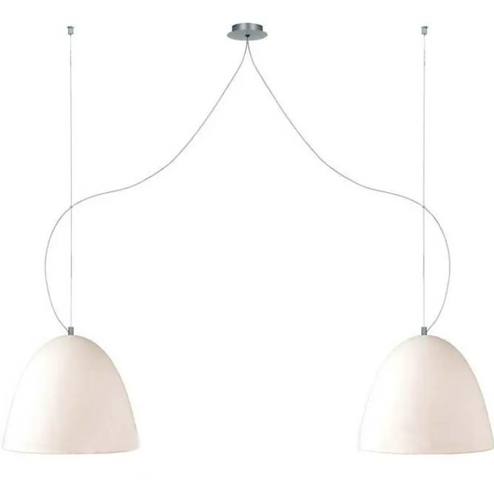 Pendellampen BELL med to lys. Klassisk elegance med en beroligende lyseffekt. Denne pendel udmærker sig ikke kun ved sin enestående glaskonstruktion. Med en så blid kurve, at den uundgåeligt har en beroligende effekt, er lampeskærmene designet til at inspirere med deres rige lysstyrke og upåklagelige evne til at integrere. Men en særlig behagelig lysatmosfære skabes af den lyseffekt, der kommer i spil, når dette armatur tændes og slukkes. Når BELL-pendlen er slukket, venter den i hvid elegance, indtil den tændes, hvilket får pendlen til at skinne i en sandfarve. Denne sandfarve skaber en særlig varm og behagelig atmosfære. Fæstet af børstet aluminium tilføjer endnu et element af høj kvalitet til dette produkt.BEMÆRK: Når du køber belysningsmidler, skal du være opmærksom på det maksimale wattforbrug for den respektive størrelse.Denne producent tilbyder armaturer, der er fremstillet i Tyskland og fremstillet i henhold til høje kvalitetsstandarder i en armaturfabrik, der har eksisteret siden 1980. Særlige og tilbagevendende karakteristika er brugen af glas, som hovedsageligt er mundblæst efter gammel tradition, og metaloverflader – for det meste aluminium – som er raffineret i hånden for at give dem deres specifikke udseende. I løbet af denne produktionsproces skabes armaturer, der altid har et moderne udseende og en meget individuel karakter.