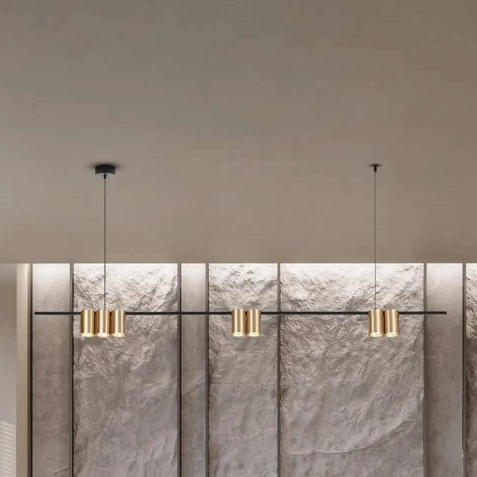 Hængelampen Genesis kombinerer moderne design med materialer af høj kvalitet og sætter stilfulde accenter i ethvert rum. Fremstillet af robust aluminium i en elegant kombination af sort og guld passer denne lampe perfekt ind i forskellige indretningsstilarter. Med en længde på 150 cm og mulighed for at integrere syv GU10-pærer er den en imponerende lyskilde, der er både funktionel og æstetisk tiltalende.