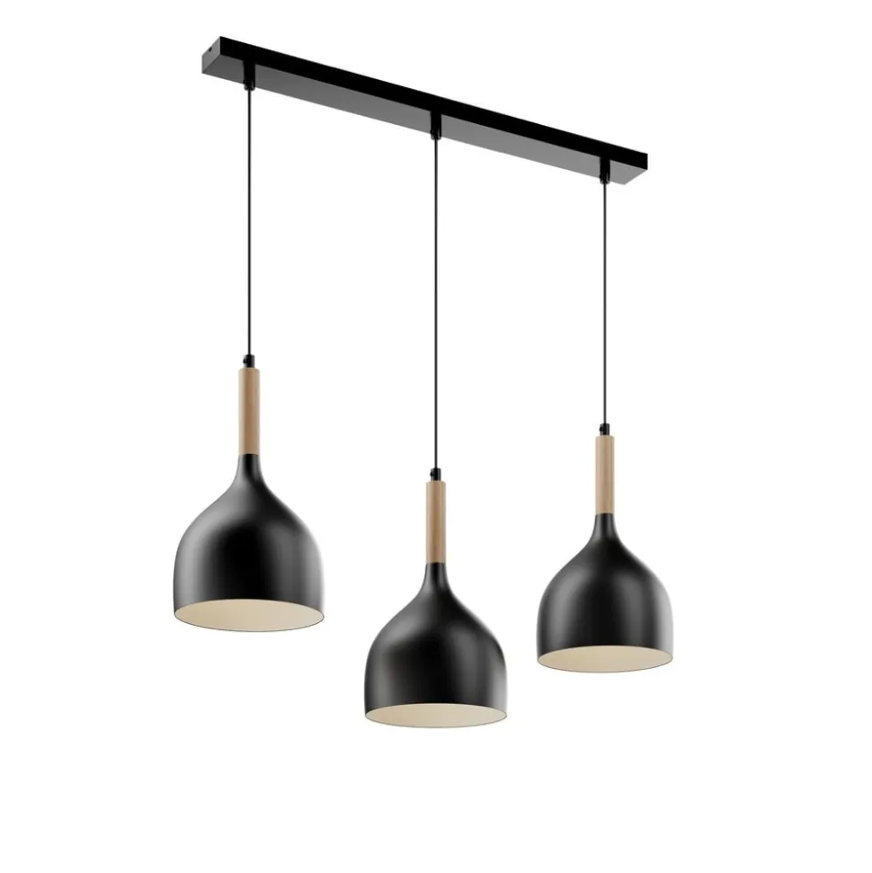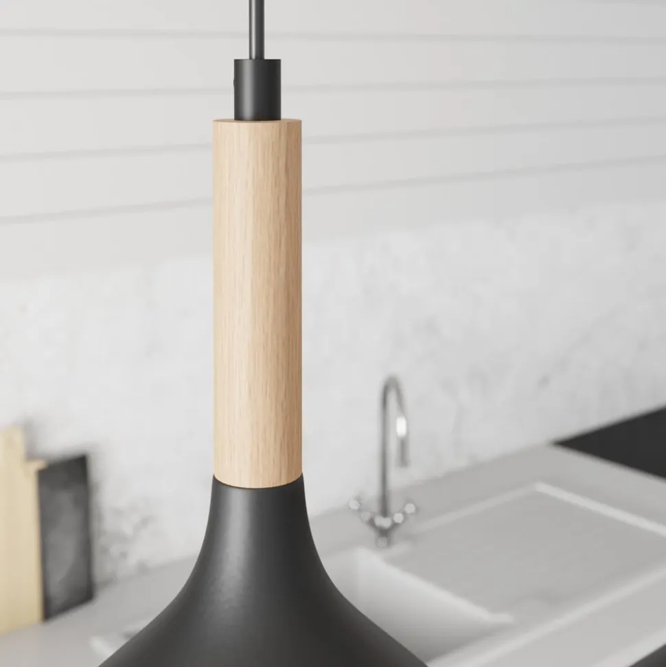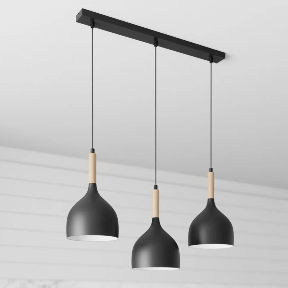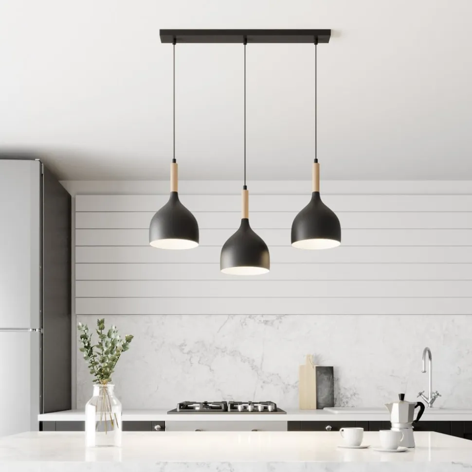 Hængelampen Noak 3-flammet lang sort/naturtræ kombinerer moderne design med naturlige elementer og skaber dermed en unik atmosfære i ethvert rum. Denne lampe er fremstillet af højkvalitets metal og træ og er et stilfuldt supplement til stuen, køkkenet eller spisestuen. Den harmoniske farve i sort og lyst træ understreger det elegante udseende og passer perfekt ind i forskellige indretningsstilarter.