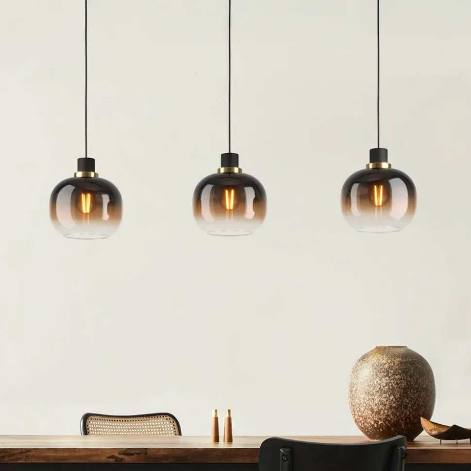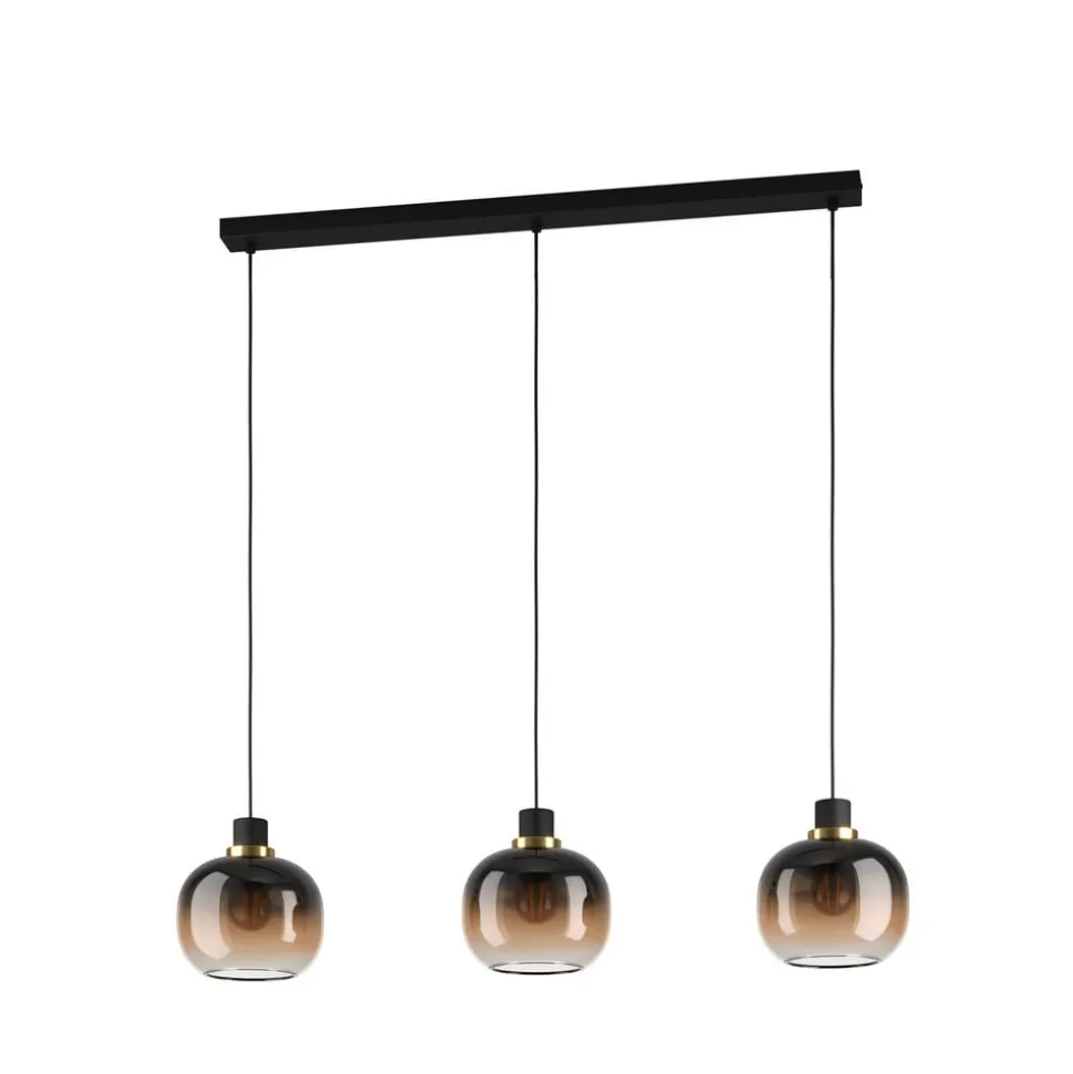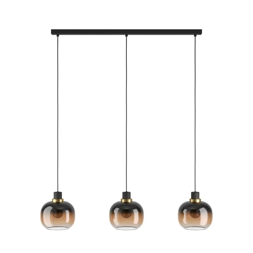 Hængelampe Oilella, sortbrun, længde 95 cm, glas, 3 lyskilder.
