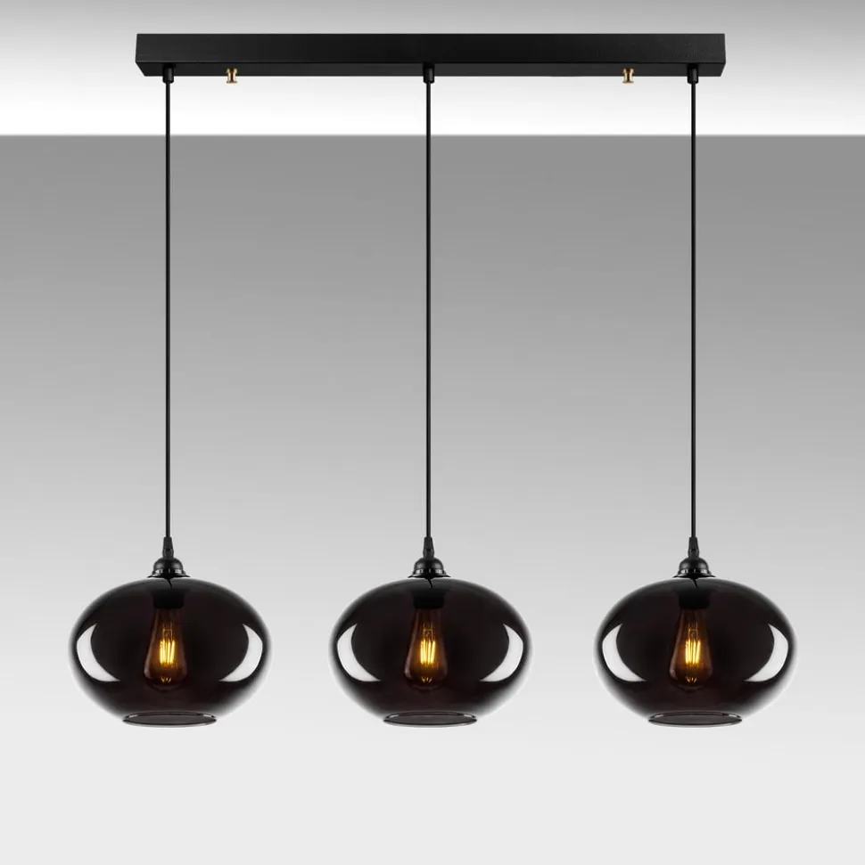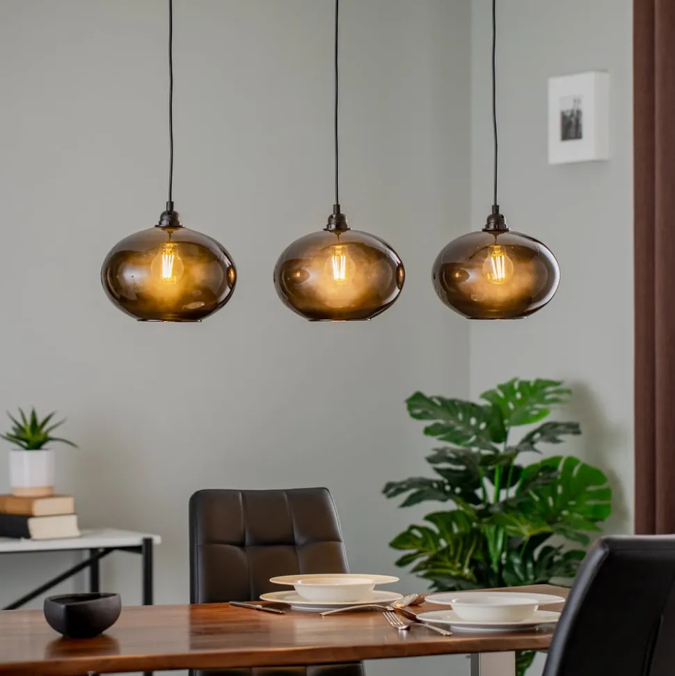 Hængelampe Smoked 052 3 lyskilder lineært glas Ø27cm