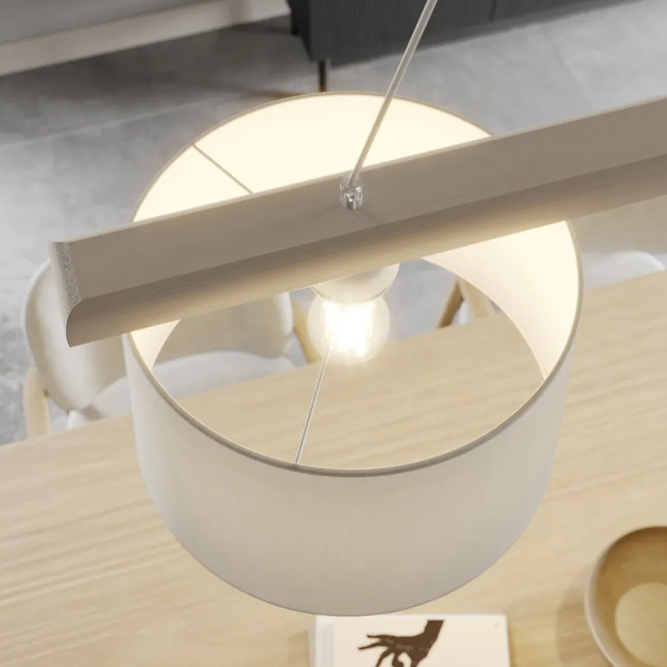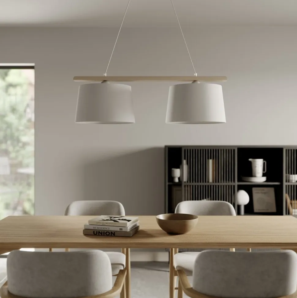 Hængelampe Sverige, antik hvid/hvid, tekstil, træ, 2 lyskilder