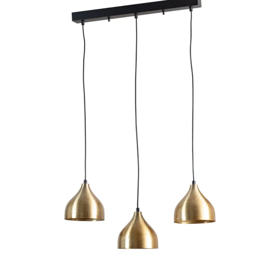 Hængelampen Tattoo 6214 i guldfarvet metal kombinerer stilfuld elegance med funktionel belysning. Denne lampe med 3 lyskilder i lineær opstilling er et blikfang i ethvert rum, hvad enten det er i stuen, spisestuen eller køkkenet. Den høje kvalitet og det elegante design gør den til et uundværligt element i moderne boligindretning.