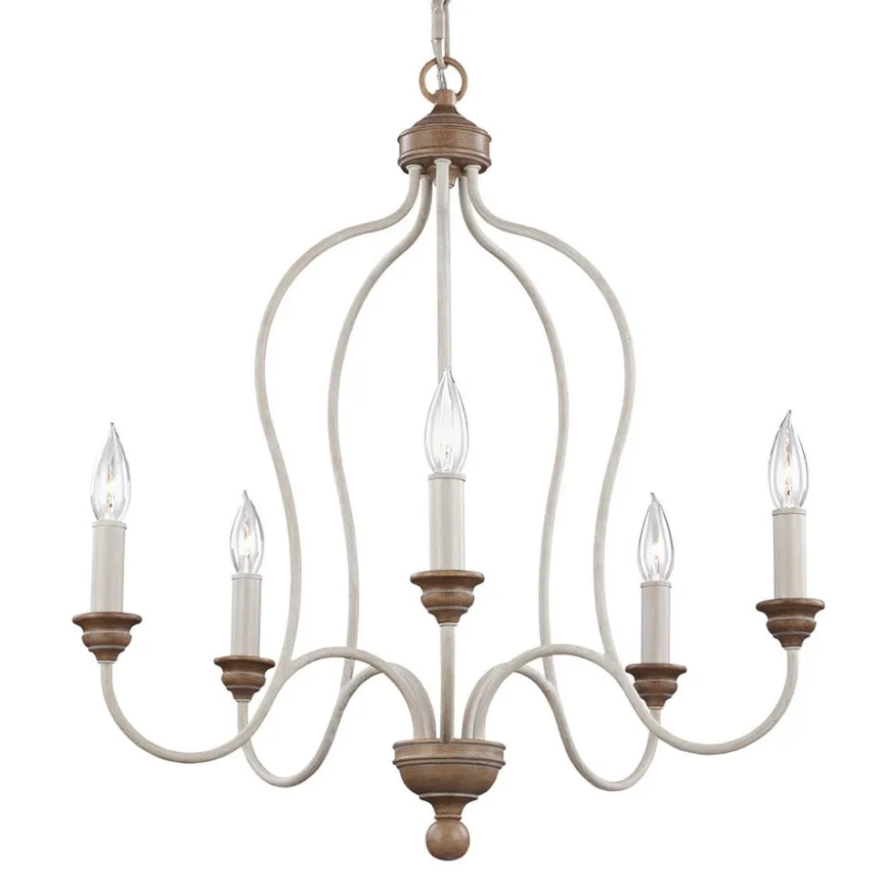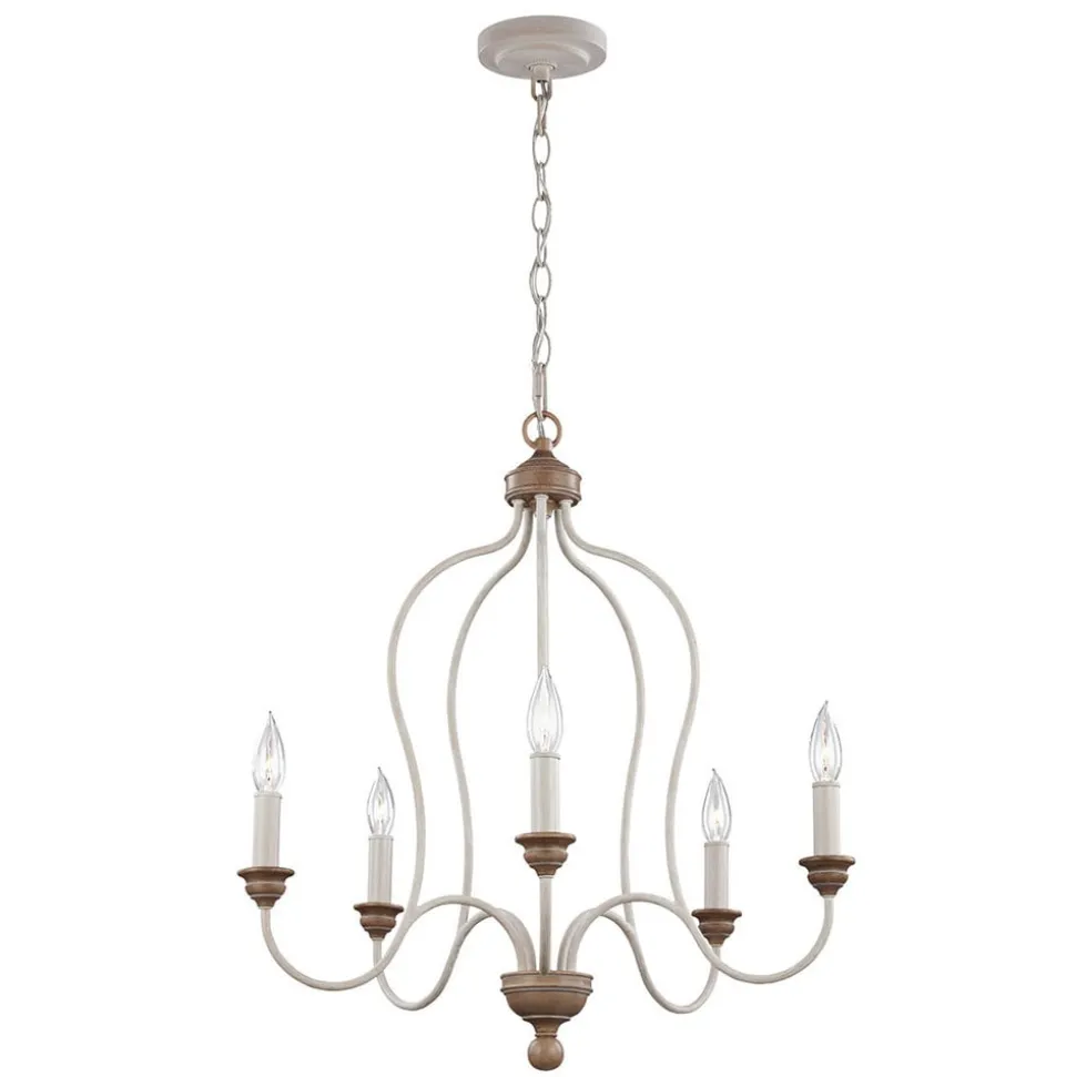 Kridthvide lysekrone Hartsville 5 lyskilder i bondehusdesign