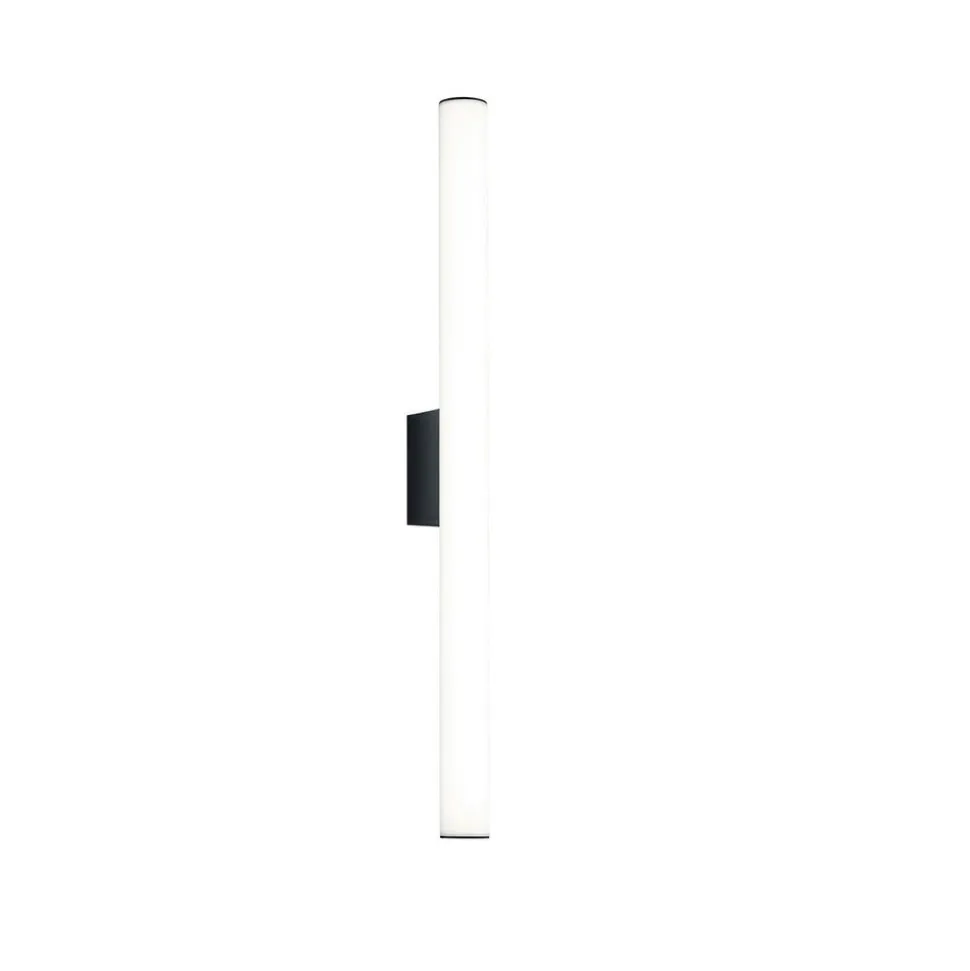 Loom LED-væglampe til ensartet spejlbelysning Vægbeslaget til Loom LED-spejllampen er lavet af mat sortlakeret metal og er centreret på bagsiden af den rørformede diffusor. Sidstnævnte er lavet af satineret akryl for at sikre en homogen og blændfri lyseffekt. Loom monteres lodret ved siden af spejlet eller vandret over det og skaber perfekte lysforhold. Bygget i overensstemmelse med beskyttelsesklasse IP44 er spejllampen også modstandsdygtig over for vandsprøjt. Med sit enkle design, der er reduceret til det væsentlige, er Loom det ideelle valg til garderoben eller badeværelset i det moderne interiør.