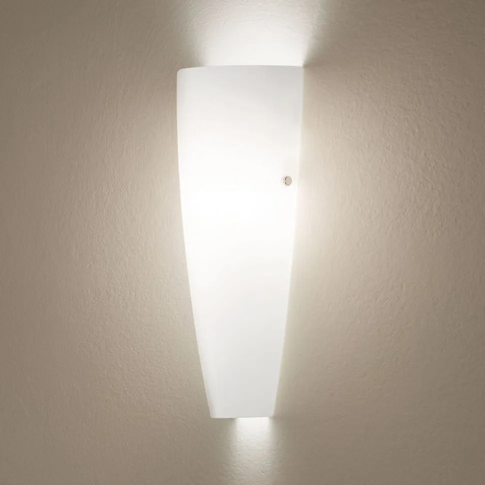 Sprøjtsikker væglampe, og derfor egnet til vådrum, som badeværelse, bruseområde og sauna. Det hvide glas udstråler varmt, hyggeligt lys. Den attraktive form kan benyttes i forskellige omgivelser.