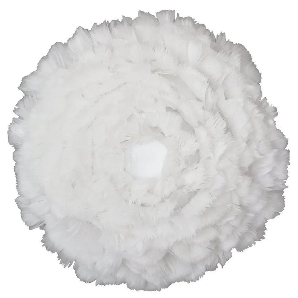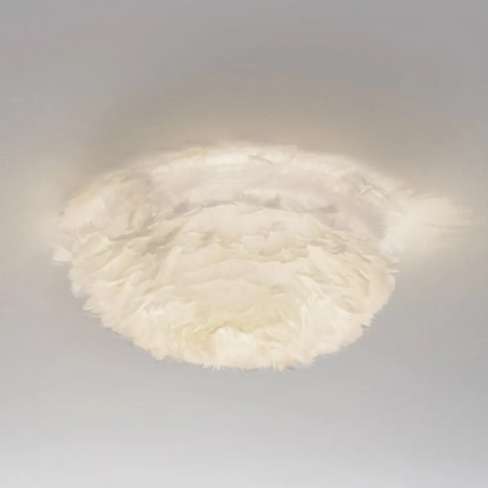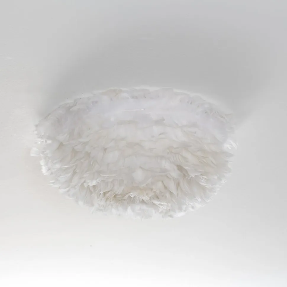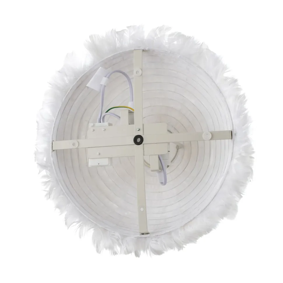 Hvid loftlampe Eos up med fluffy fjerskærm