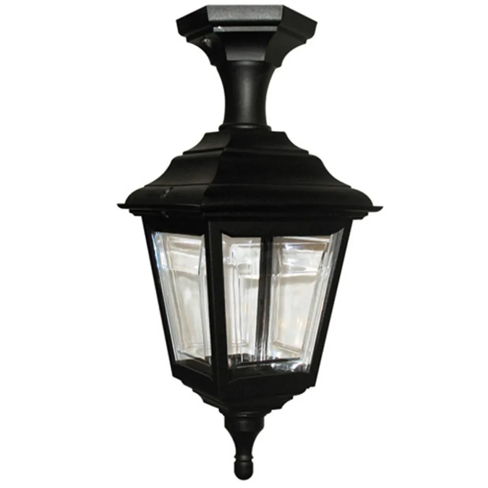Det særlige ved denne flotte lyskilde: Sokkellampen kan også monteres som loftlampe i udendørsområdet.