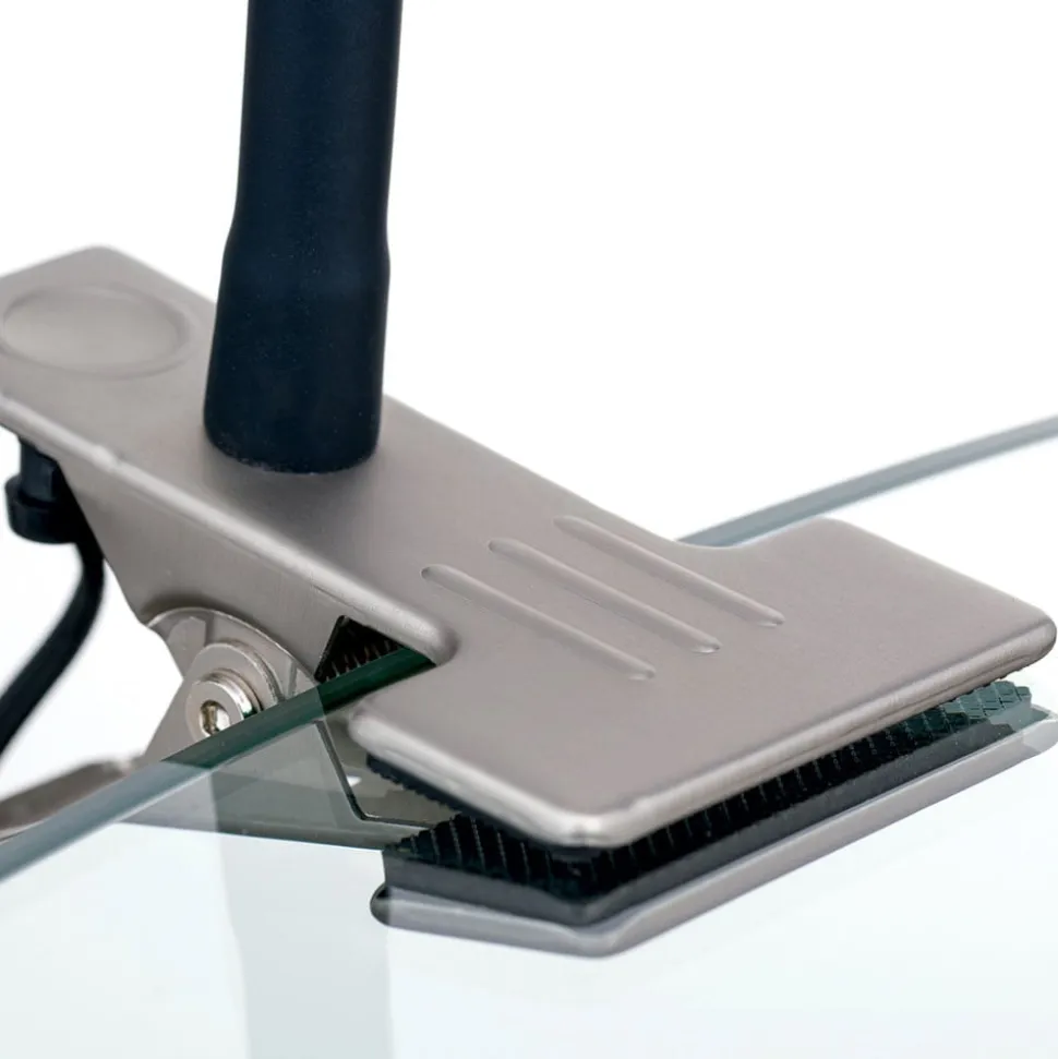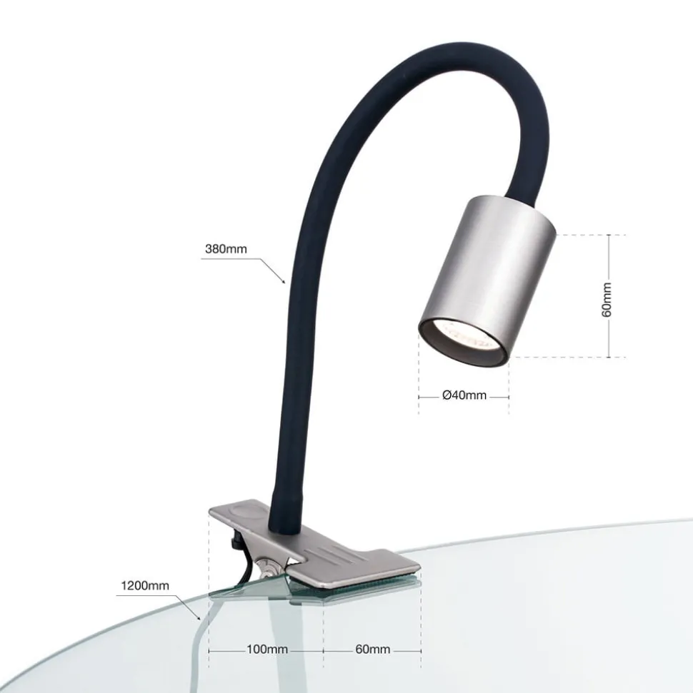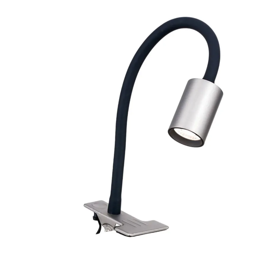 Praktisk Kurt LED-klemmelampe med fleksibel arm Kurt LED-bordlampen kan bruges fleksibelt takket være klemmen, enten på skrivebordet, i køkkenet eller i hobbyrummet, for blot at nævne nogle få steder. Den giver et præcist lys, som nemt kan justeres til individuelle behov ved hjælp af den fleksible arm. Den matte farve på armaturhoved og klemme står i kontrast til den fleksible, sorte armaturhals. Kurt-klemmelampen har en udstrålingsvinkel på 36°. Lyset har en afbryder på det 120 cm lange forsyningskabel, og lampeklemmen kan åbnes op til 3 cm.