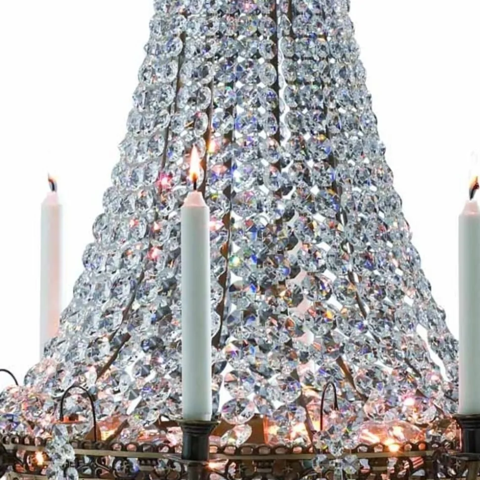 Denne lysekrone til levende lys er et sandt smykke. Metalrammen fås i forskellige størrelser og giver lampen sit klassiske design. Utallige krystaller forædler lysekronens fremtoning og er desuden ansvarlige for glansfulde belysningseffekter. Den imponerende fremtoning afrundes yderligere med lysestager, hvori de slanke lys sørger for en harmonisk udligning. Denne lysekrone fortryller ethvert rum, også når den er slukket, og den er et vidunderligt blikfang.