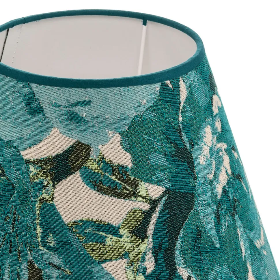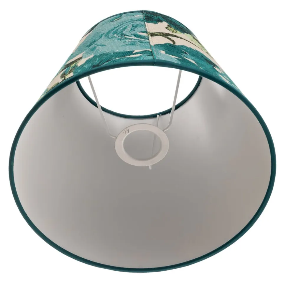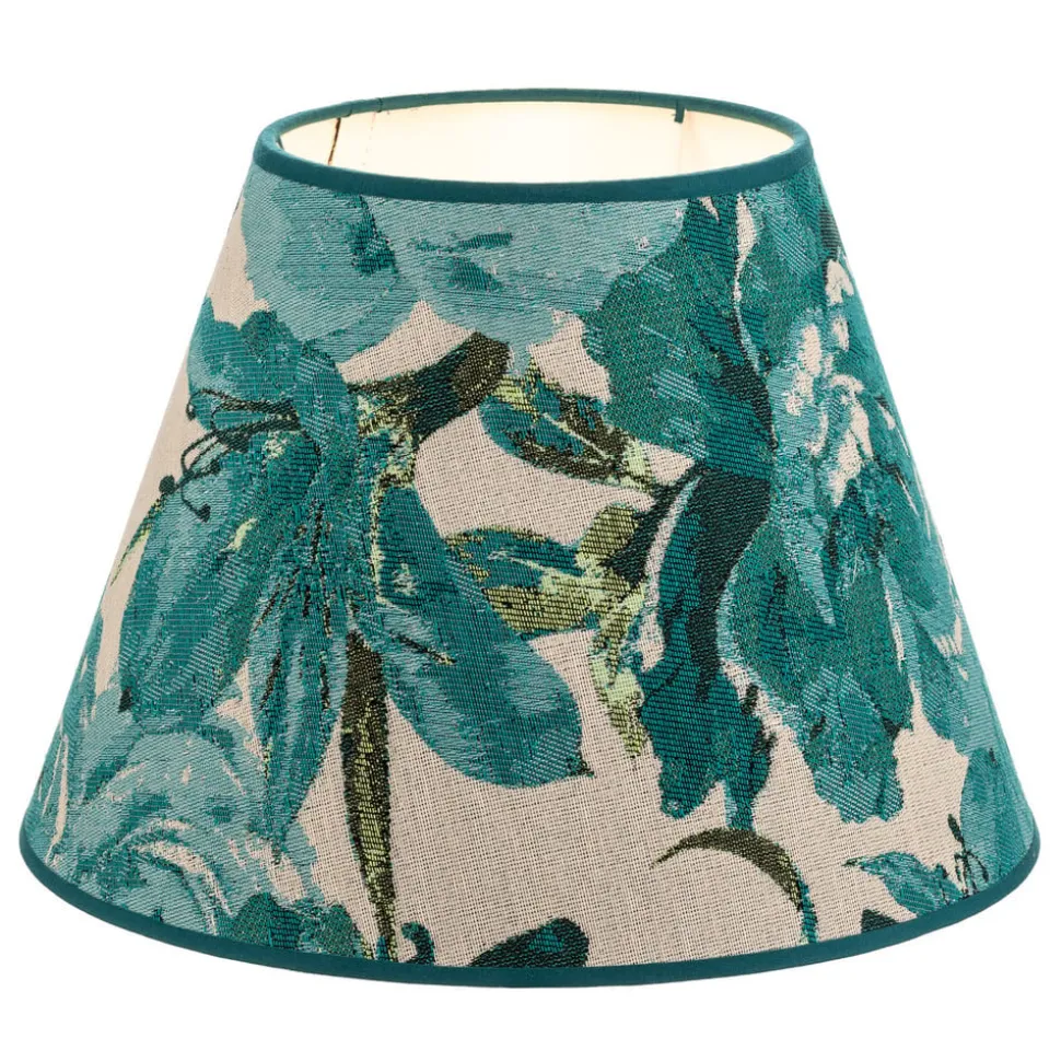 Sofia lampeskærmen kombinerer stilfuldt design med høj kvalitet og bringer et strejf af elegance til ethvert rum. Den er fremstillet af fint tekstilmateriale og charmerer med et flot blomstermønster i en levende turkis farve. Denne kombination af materiale og farve sikrer en harmonisk lysfordeling og skaber en behagelig atmosfære, der både kan virke beroligende og inspirerende.