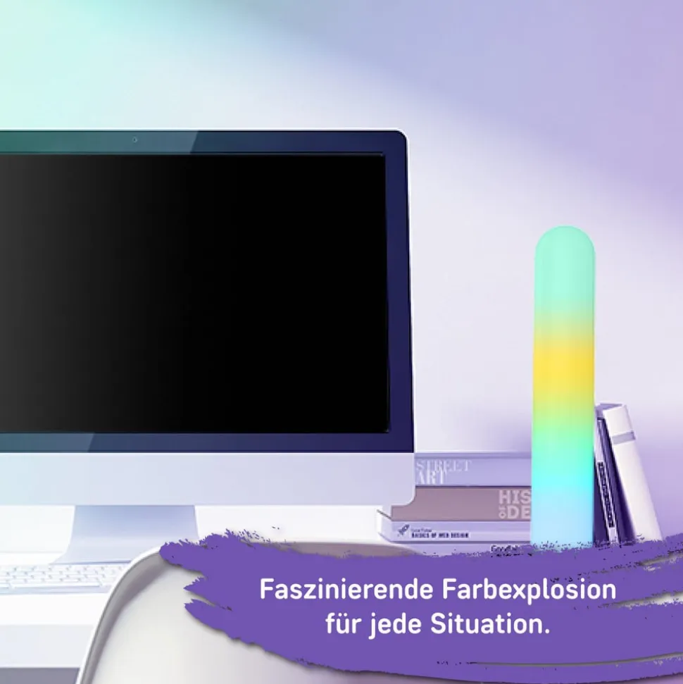 LED-bordlampe Light Bar, RGBW, med fjernbetjening eller kan styres via app Med Magic Light Bar LED-bordlampen kan ethvert rum forvandles til et sandt lysparadis. Med den nye digitale RGB-teknologi kan forskellige farver nu vises samtidigt, hvilket skaber en sand eksplosion af farver. Lampen kan ikke kun vise en bred vifte af farver, men også hvidt lys. Et uendeligt antal lyseffekter kan nemt styres med Magic Light Bar LED-bordlampen ved hjælp af Tuya-appen på din smartphone eller den medfølgende fjernbetjening. Selv musik kan komme til live sammen med lyset takket være den integrerede musiksensor. Når funktionen aktiveres, danser lyset i takt med dine yndlingssange. Lampen kan placeres vandret eller lodret i det medfølgende beslag, og Tuya-appen er gratis tilgængelig fra Google Play eller App Store.