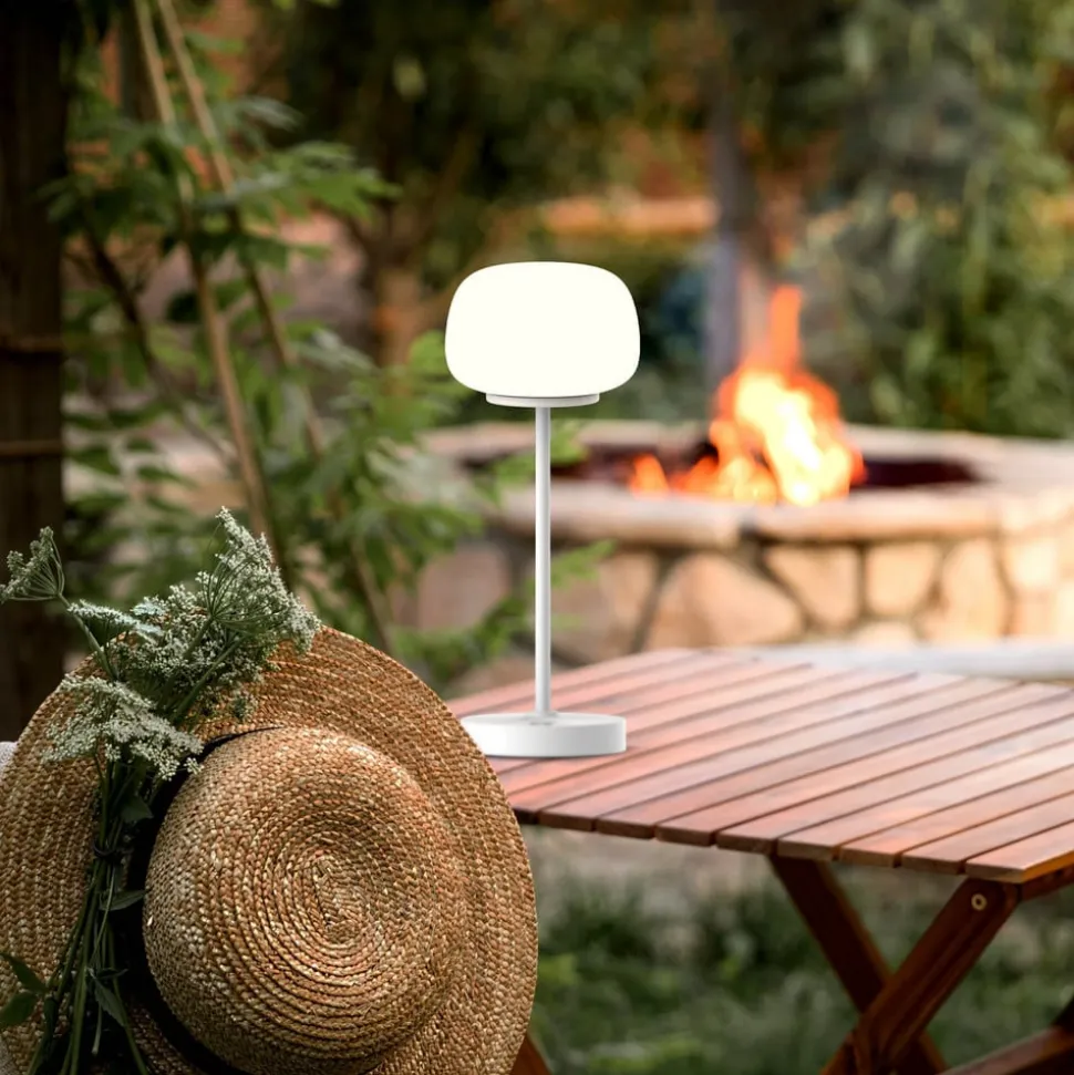 Pina LED-bordlampe med genopladeligt batteri og touchdæmper Pina LED-bordlampen er en mobil ekstra lyskilde, der beriger stuer og opholdsrum. Dens farvede metalramme understøtter en rund lampeskærm af matteret glas, som huser en varmhvid LED-lyskilde. Lysstyrken kan reguleres ved hjælp af berøringsdæmperen på soklen. Den tidligere valgte lysstyrke er tilgængelig igen, når den tændes igen (hukommelsesfunktion) – Opladningstid: 4 timer – Belysningens varighed pr. opladning: 5 timer – Opladningsindgang: USB-C