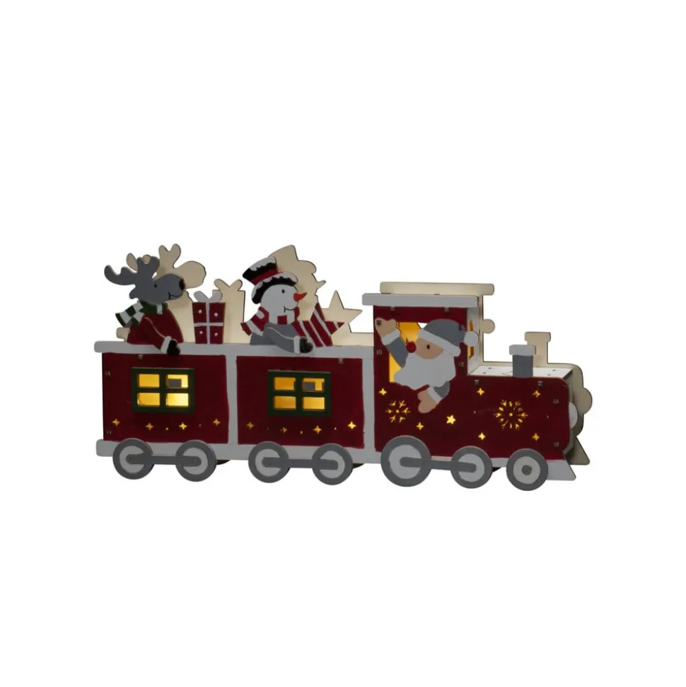 LED-dekolampe, træsilhuet tog, batteri, USB