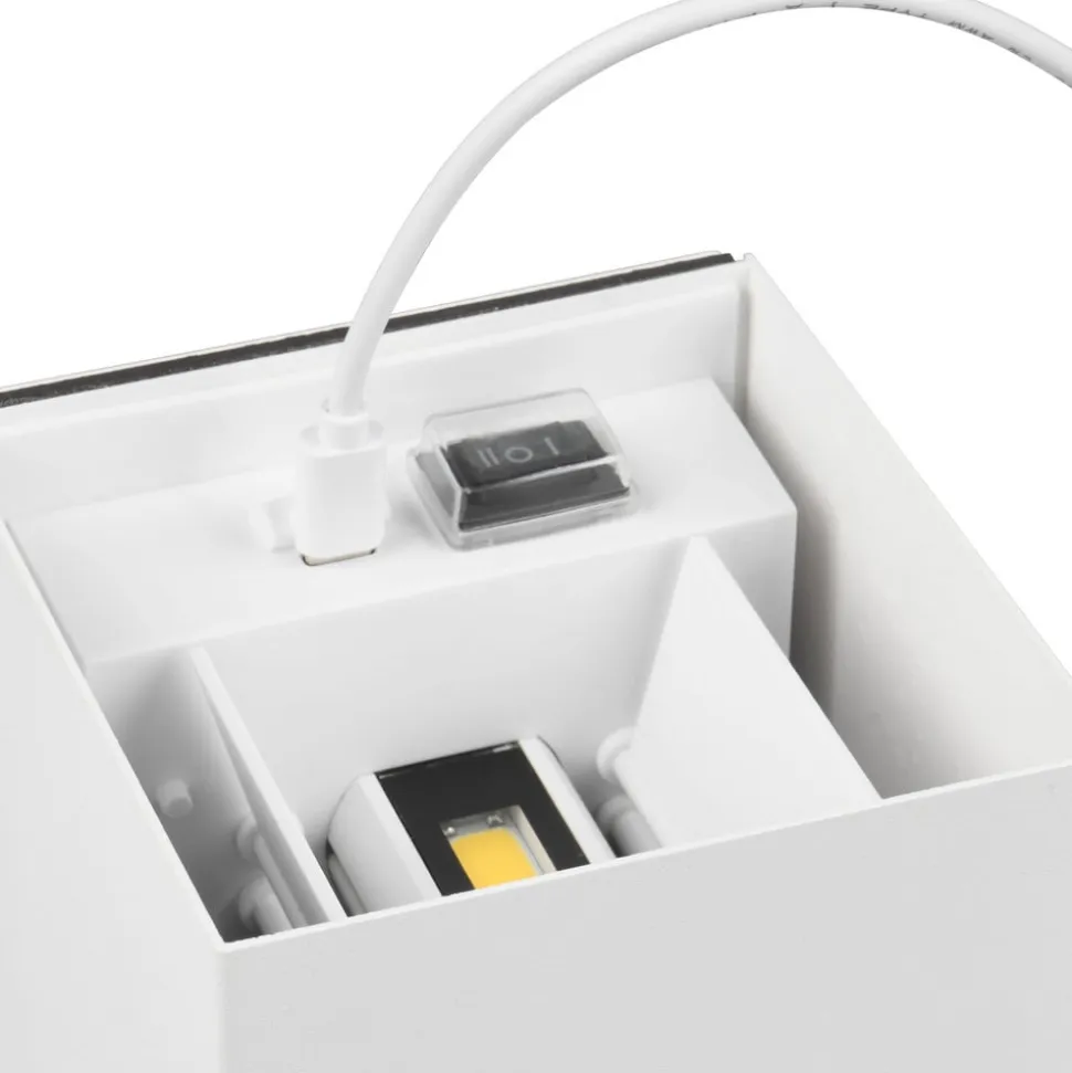 Genopladelig LED-væglampe Talent: en moderne, genopladelig lyskilde Oplev den genopladelige LED-væglampe Talent, som ikke kun er æstetisk tiltalende med sin kubeform og metalfinish af høj kvalitet, men også ekstremt praktisk. Den integrerede LED-lyskilde giver energieffektiv belysning, mens lampens moderne stil giver et moderne præg til ethvert udendørs miljø. Talent-væglampen er udstyret med en sensor, så den kun lyser, når der registreres bevægelse. USB-C-kabel medfølger – inkl. skumringssensor – udstyret med magnetisk holder