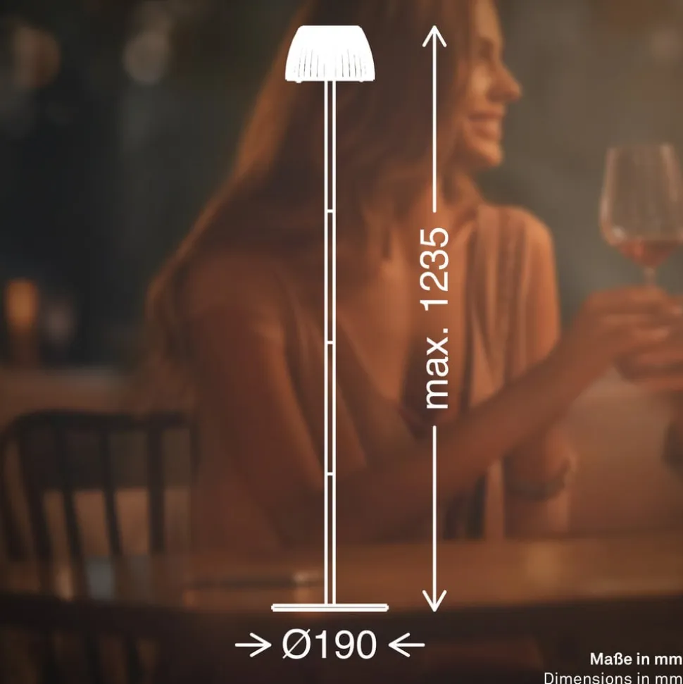 Et særligt træk ved denne gulvlampe er den integrerede touch-dæmper, der gør det muligt at tilpasse lysintensiteten individuelt. Lampens fleksibilitet understreges af den trådløse betjening, der gør det nemt at placere den uden generende kabler. Uanset om det er udendørs, i gangen eller i stuen, tilbyder Brilo unplugged Riffle en alsidig belysningsløsning, der er både funktionel og æstetisk tiltalende.