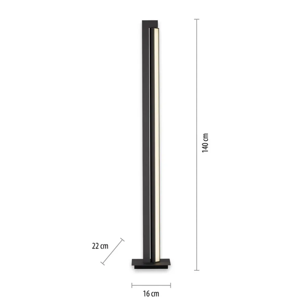 LED-gulvlampe PURE Lines, antracit, fjernbetjening, 140 cm