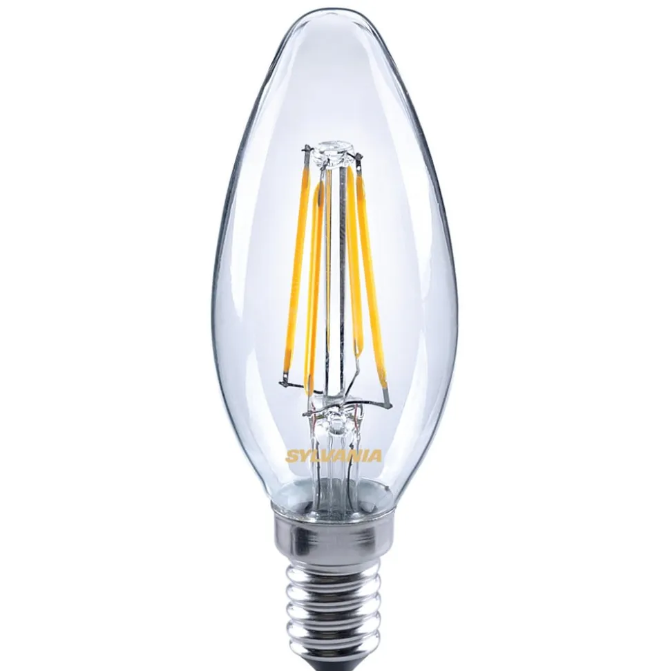 E14 LED-kertepære ToLEDo 4,5W med varmhvid lysfarve og klart glas