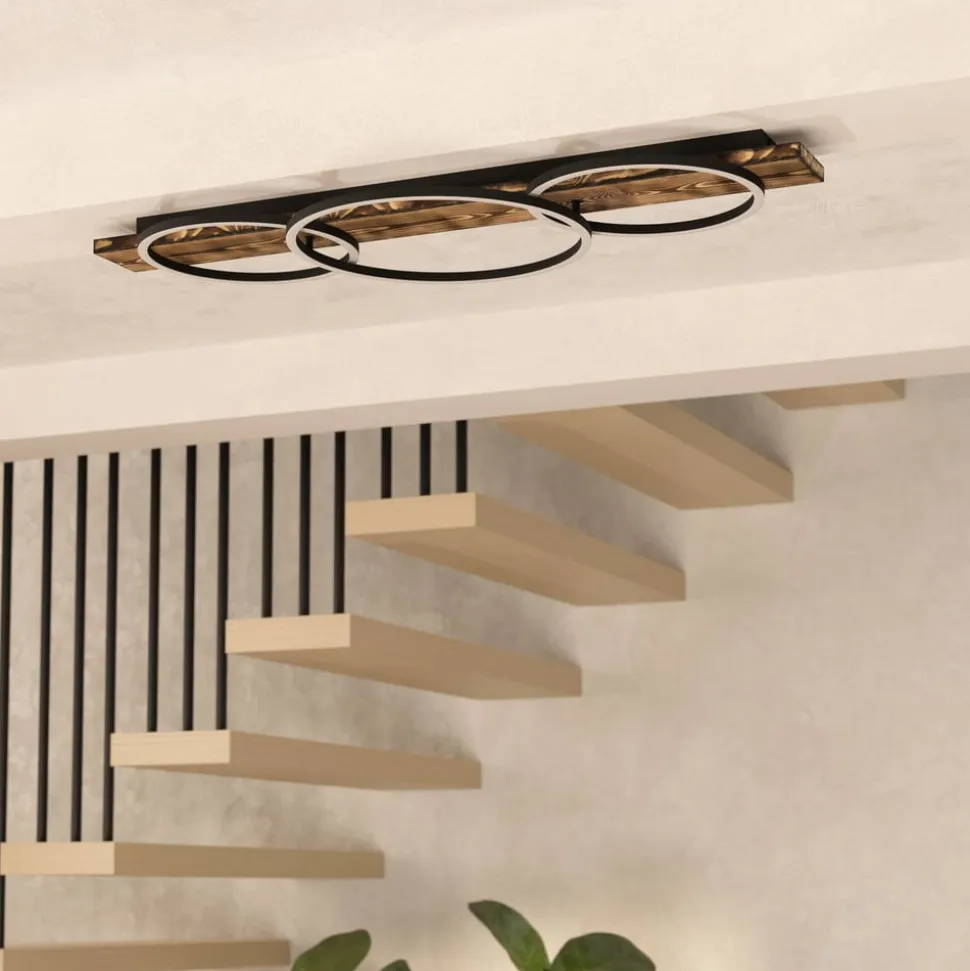 3 lyskilder Boyal LED-loftlampe til stilfulde accenter Boyal LED-loftlampen imponerer ikke kun med sit elegante sorte design og varme trælook, men også med sin evne til at skabe atmosfære. Med tre lyskilder giver Boyal loftlampen en afbalanceret belysning til stuen, spisestuen og køkkenet. Den energibesparende LED-teknologi sikrer en effektiv belysning af rummene og bidrager til en behagelig atmosfære.