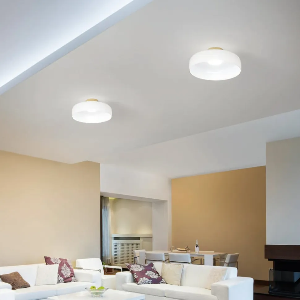 LED-loftlampe Lunar, hvid, glas, Ø 42 cm, CCT, dæmpbar