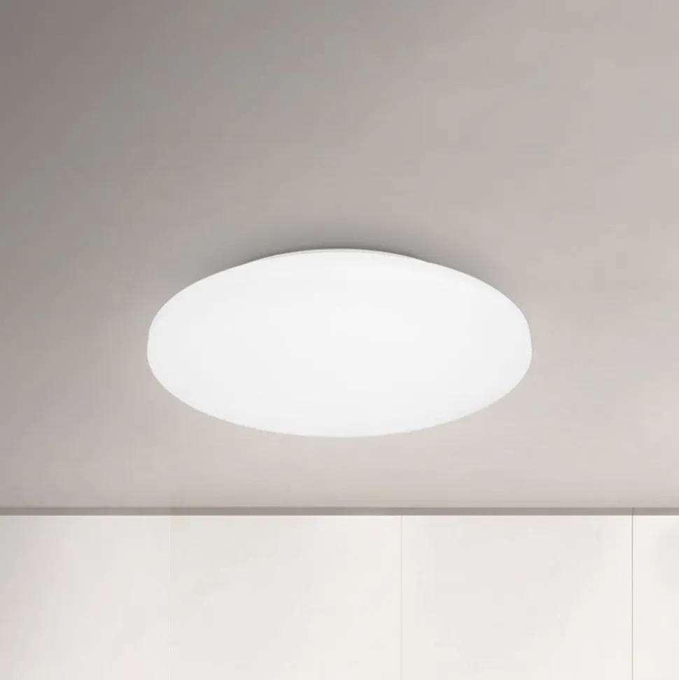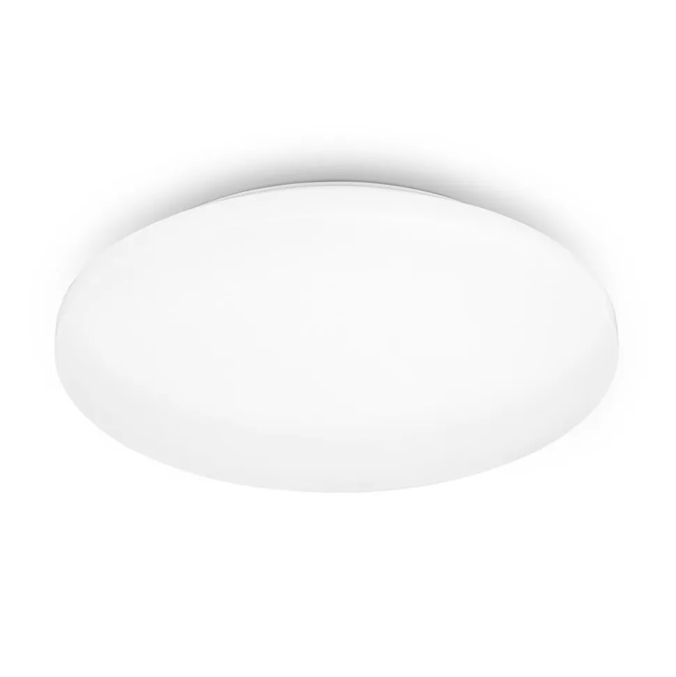Rund LED-loftslampe Case til varmhvid almenbelysning Case-loftslampen er designet i en diskret og neutral rund form af hvid plast og passer ubesværet ind i næsten ethvert miljø. Takket være sin stænkbeskyttelse (IP44) kan LED-loftslampen også bruges på badeværelset. De integrerede LED’er producerer varmt hvidt lys, som spredes bredt i omgivelserne.
