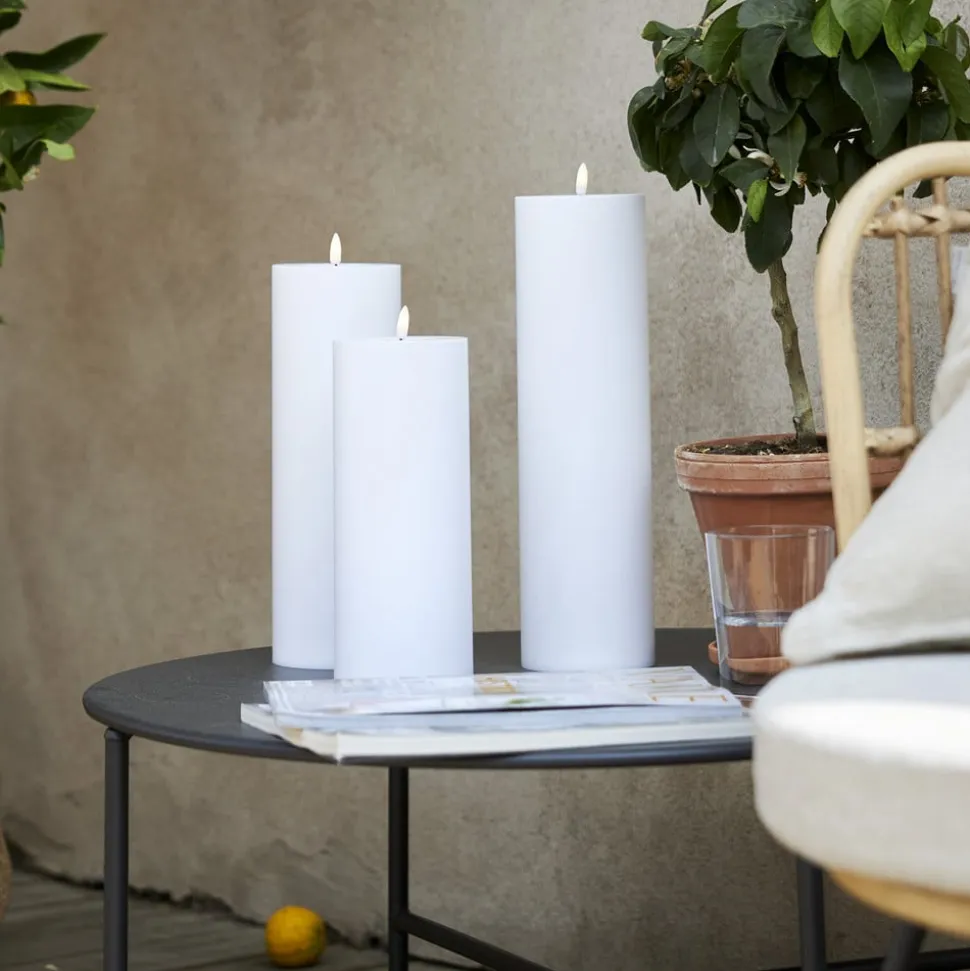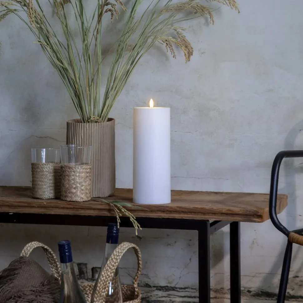 LED lys Flamme Rak 27,5 cm hvid plast batteridrevet