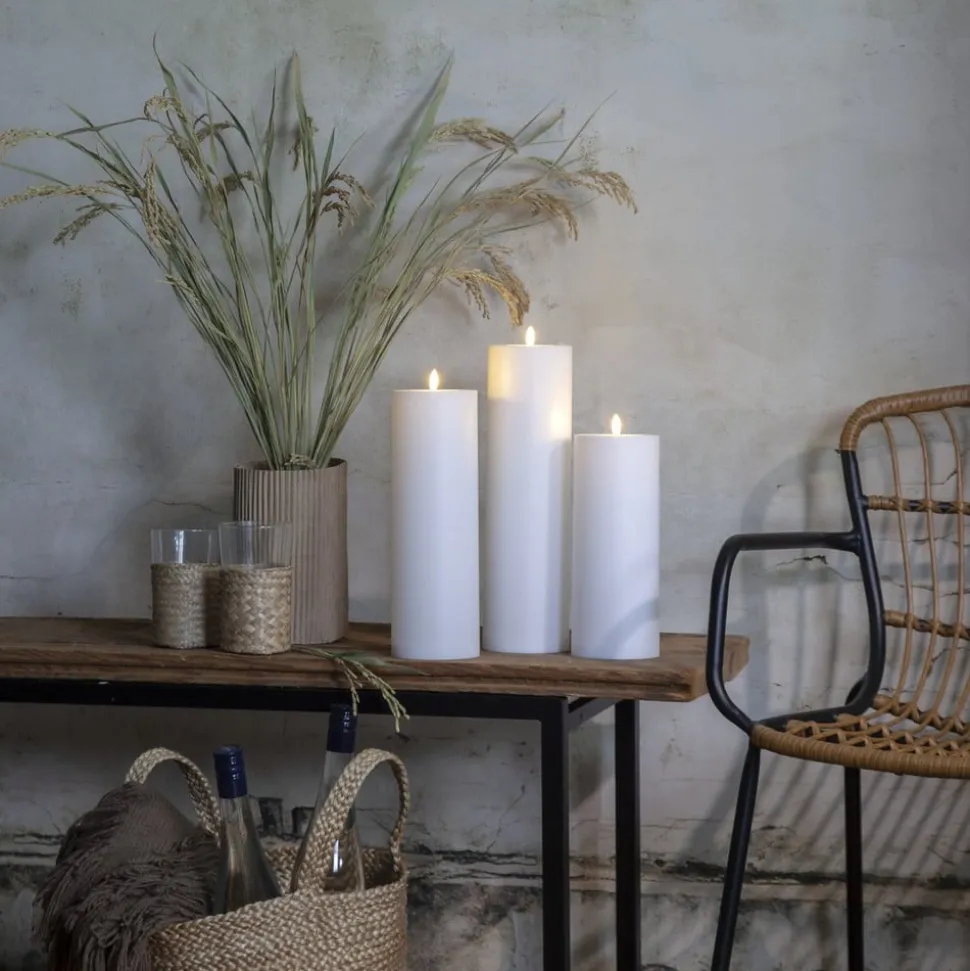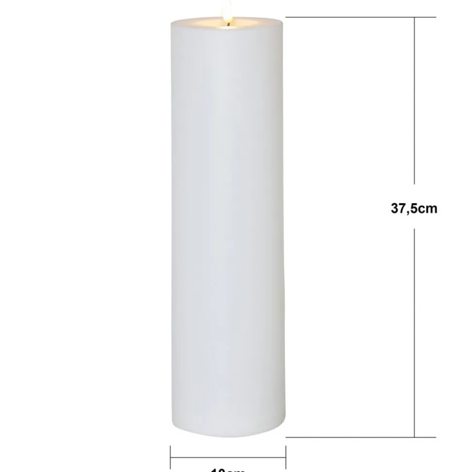 LED lys Flamme Rak 37,5 cm hvid plast batteridrevet